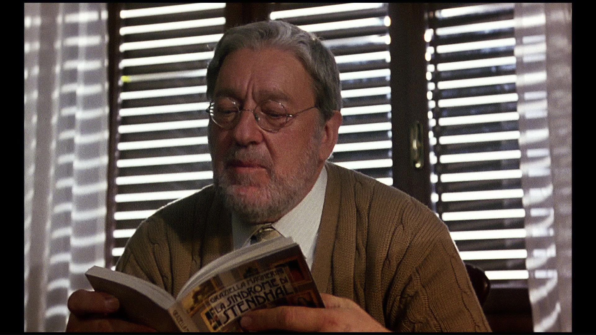 about transformation, perception, scars, and disorientation, after all), confirming this is a film best viewed with other people willing to talk about it afterwards. The excellent new "Three Shades of Asia" (20m1s) features the actress in very articulate form as she recalls the shoot in vivid detail, charting the Florence shoot, the experience of shooting in the legendary Uffizi, the flickerings of the titular syndrome she experienced herself, the visual trickery behind some of the physical abuse she had to enact (the fish kissing sounds like the worst of it), the brilliant of Rotunno's ability to create "black nights" on film, and confirms a body double had to perform some of the "naked and violent scenes" at the halfway point. (She and her dad both hate her voice in the English track, too.) Regular Argento co-writer Franco Ferrini appears for "Prisoner of Art" (13m36s) to discuss adapting the Magherini book-length essay into the current story (with Ferrini turning the female lead into a cop instead of Argento's lawyer idea) with some pivotal advice from Sergio Leone informing Argento's method of leaning on show-stopping openers, which works better in some cases than in others. In "Sharp as a Razor" (10m3s), special makeup artist Franco Casagni speaks fondly of working with Rotunno (who retired after making this film) before going into detail about bloodying up actors, gouging out eyeballs, and creating prosthetic heads. The trailer and a gallery of promotional stills and international poster art close out the Blu-ray, which also comes with two DVDs. The first DVD also has the film and the new featurettes, while the second DVD is reserved for all four of the 2007 featurettes in their original SD glory. The release also comes with an insert booklet containing liner notes by Michael Gingold, who offers a thorough account of the film's creation, production, and release (albeit with some spoilers, so watch the film first!), all the way from its Americanized genesis through the aborted plans for a sequel with the Anna character that morphed into The Card Player. 2017 First Pressing Blu-ray Frame Grabs