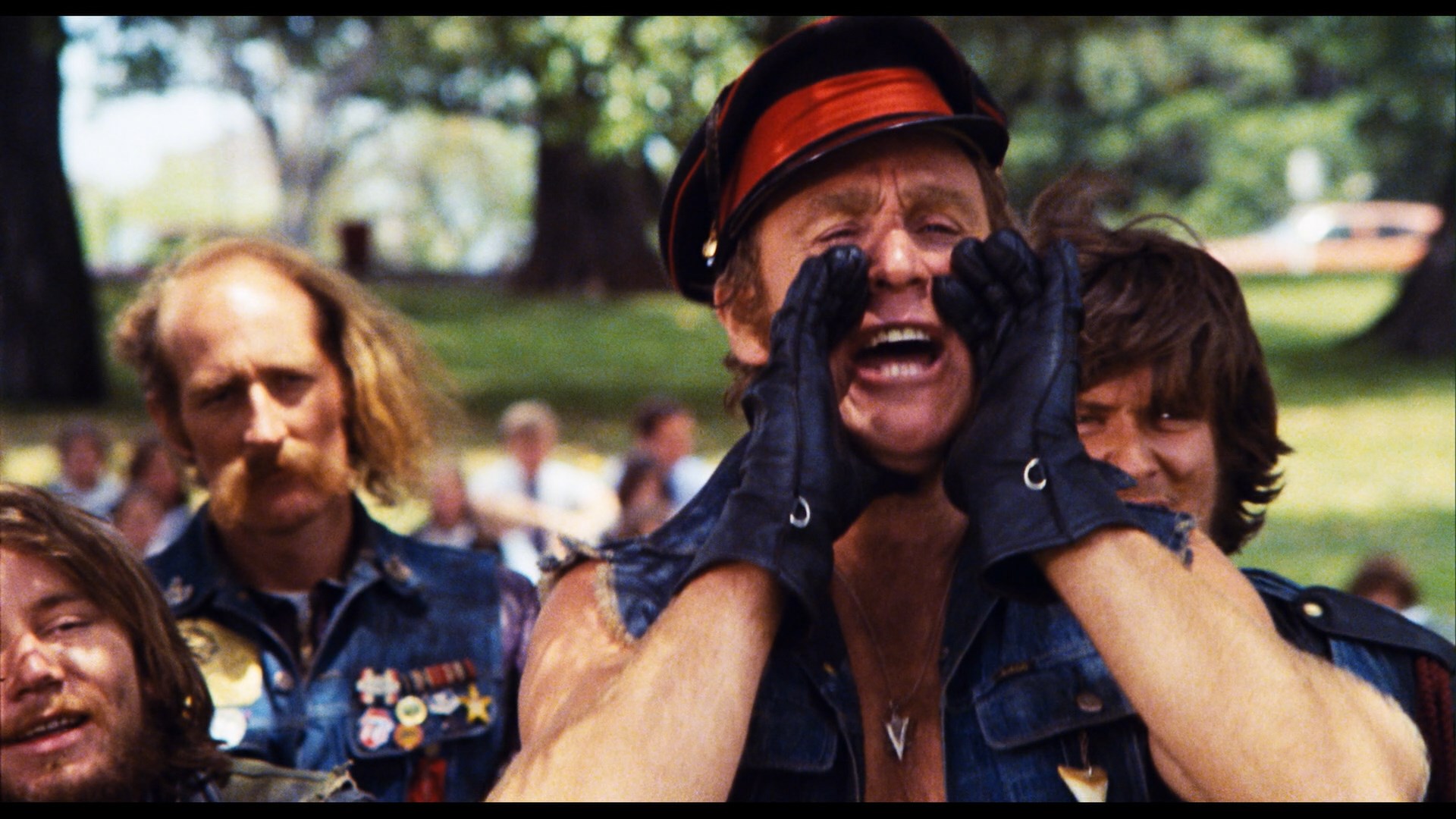 tests (8m33s), the trailer, and a slideshow of production stills with Harbutt commentary (21m19s). In 2021, Umbrella bowed the film on Australian Blu-ray featuring all of those extras along with a huge heaping of extended interviews from Mark Hartley's Not Quite Hollywood (125m37s) with Harbutt, Shorter, Rebecca Gilling, Roger Ward, editor Ian Barry, and executive producer David Hannay sharing tons of anecdotes from the shoot involving arrests, makeup mishaps, the real bikers, the scripting process, and more. In a very welcome gesture, it also features the deleted and extended scenes (37m57s) from the longer theatrical cut including more skinny-dipping, more riding, more chatting, and more funeral-ing. It's easy to see why the director wanted to pare this material down for pacing reasons, but the presence of this material here as a bonus is great to have. You also get a brief Quentin Tarantino appreciation for the film. In 2022, Severin released its own region-free Blu-ray edition featuring the same excellent HD scan (approved by the director just before his death) and all of the extras from the its earlier release and the Umbrella edition (except for the Tarantino bit, which is no significant loss). The DTS-HD MA English 2.0 mono track is in excellent shape as well and features optional English subtitles. The Severin Blu-ray also comes with a 15-track CD soundtrack, featuring the fuzz-laden score by Billy Green in all its glory and clocking in at 44m47s.