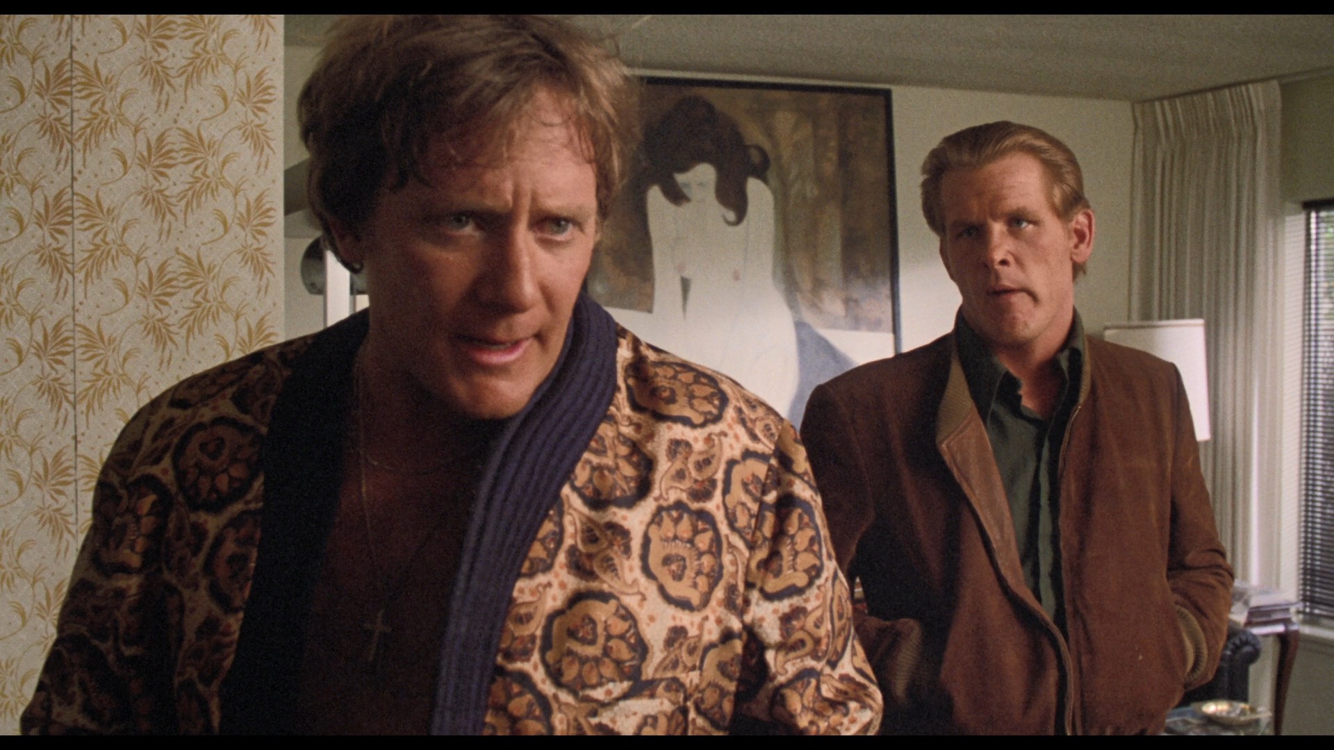 Initially released on DVD by MGM in an okay but sparse anamorphic presentation and then repackaging as a two-movie set with Rush, Who'll Stop the Rain first appeared on Blu-ray in 2017 from Twilight Time featuring a trailer and an interview with editor John Bloom, plus liner notes by Julie Kirgo and Kevin Hagopian. That edition went out of print fairly quickly like many of the label's titles, paving the way for a 2021 Blu-ray reissue from Scorpion Releasing via Ronin Flix sporting what's promoted as a new 2020 HD master. The transfer looks very healthy with fine, natural grain and a strong, warm color scheme throughout that makes for an appealing viewing experience, certainly more robust than the drab and faded look it had in the scant repertory screenings around major cities that stopped around a decade ago. The DTS-HD MA English 2.0 mono track sounds crisp and without any significant issues, and optional English SDH subtitles are provided. A new audio commentary by film historians Daniel Kremer and Scout Tafoya is extremely thorough, starting off with a lengthy appraisal of Reisz and the role of this film in his career (including some welcome nods to his earlier, undervalued version of Night Must Fall) Who'll Stop the Rainas well as an analysis of how the film tackles the idea of America dealing with the moral rot that had set it over the preceding decade (at least). As with nearly all MGM-connected commentaries subjected to the studio's legal team, this appears to have suffered from some obvious trims in a few spots (an Who'll Stop the Rainearly mention of Apocalypse Now cuts off very abruptly into a bit of dead space, for example), and amusingly, a couple of references have already dated (such as the now former location of Amoeba Records in Hollywood and a mention of the "deceased" Wings Hauser, who turns up briefly here alongside a very young Jonathan Banks). Three new featurettes are included here starting off with actor Richard Masur (11m56s), who explains his own working relationship with Stone, the true meaning of the source novel's title, and his later reunion with Nolte on Under Fire. Speaking of which, that latter film's director, Roger Spottiswoode (who also went on to Terror Train and Tomorrow Never Dies), turns up next for an interview (13m55s) in which he recalls serving as an associate producer on this film and being taken under Reisz's wing at the time after working as an editor for Sam Peckinpah. He also shares plenty of stories from the shoot, including memories of Nolte's impassioned dedication to the project and his character. Last up in screenwriter Judith Rascoe (12m), who chats about her own connection to Stone and her familiarity with the real-life scene involving writer Ken Kesey that inspired a large portion of the book. She also goes quite a bit into the writing process, which involved compressing the book down as much as possible while retaining all the dialogue they could. The theatrical trailer is also included in SD along with bonus ones for Trackdown, 9/30/55, Rollerball, Hell Camp, The Dogs of War, and, uh, The Norseman.