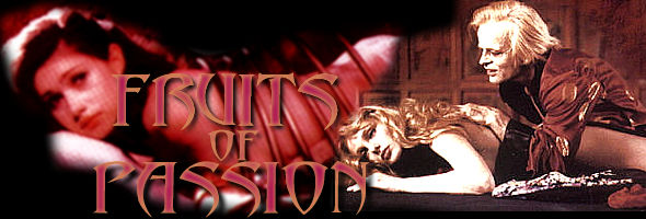 Rarely seen outside of its initial theatrical run, Fruits of Passion bounced from one video label to another in a horribly butchered, 74 minute edition which featured dreary image quality and few aspects of interest. Anchor Bay's DVD makes for an eye opening revelation; not only is it beautiful to behold and now far more significant as an aesthetic achievement, but this print contains eight minutes of extremely graphic, often hardcore footage. Not really lingering or exploitative, the added scenes are all the more jolting for their unexpected integration into the story, with even Klaus himself participating in a few scenes of blatantly unsimulated coupling. Since this marks Anchor Bay's first hardcore title, one can only wonder how much it will impact any of their future title choices. The direction by poet Shuji Terayama (who died shortly after this film's completion) features a number of startling touches, with a particular and haunting emphasis on water (the submerged piano, a floating doll, the climactic door-bursting). The music score by "J.A. Seazer" is likewise a beautiful achievement, delicate and haunting with a memorable main theme. The film isn't perfect, with Illiers in particular given little to do besides mope around naked and occasionally suffer the abuse of her clients. Compared to the original O, Corinne Clery, she simply fades off into the woodwork. Otherwise, this compares favorably to the original and now earns its place as one of the best films from the final days of classy erotica. The DVD also includes a graceful, striking animated menu design and two language options-- one completely dubbed (poorly) into English, the other retaining the Tower of Babel audio mix of English, French, Cantonese, and Japanese with most of the actors' original voices. Only the latter really works in the context of the film, which thrives on intercultural confusion.