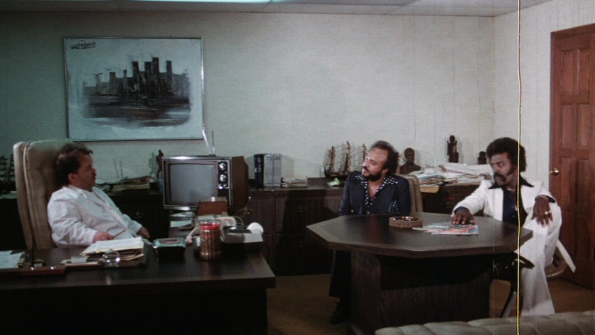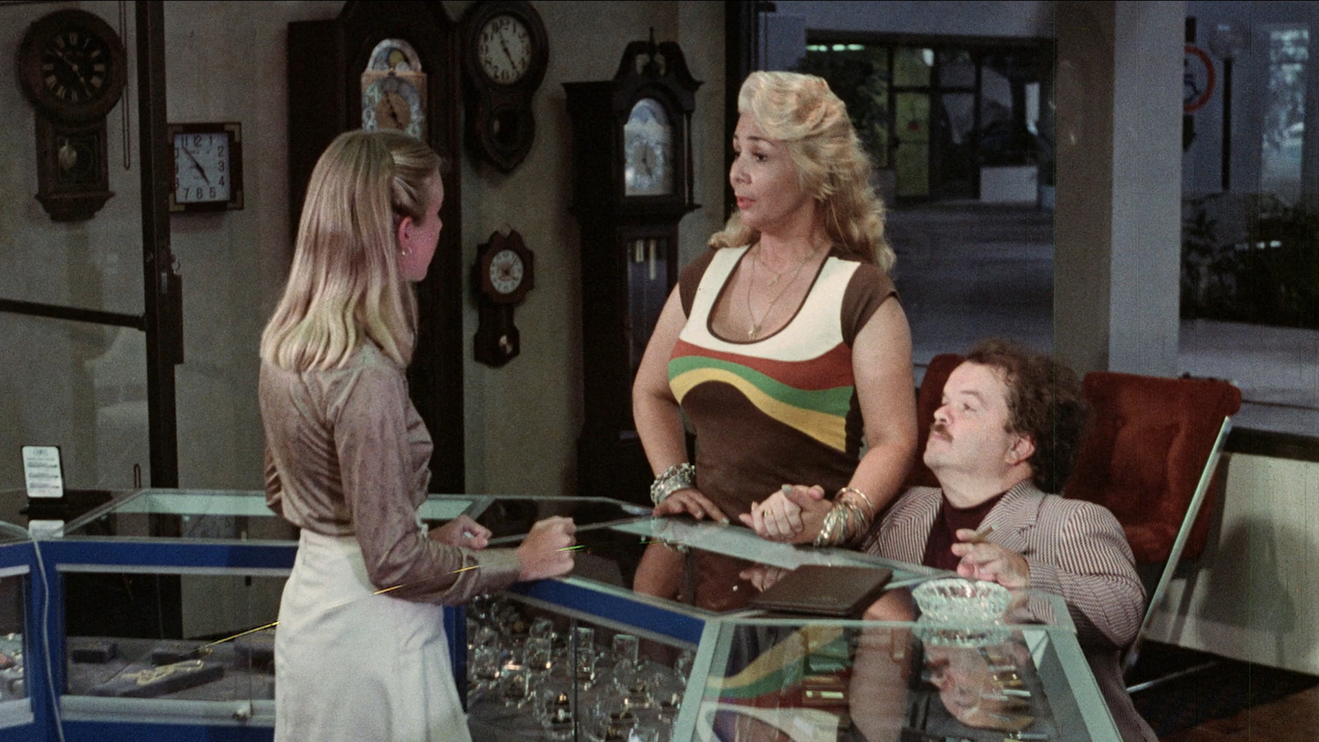 A 2015 bare-bones DVD release from Vinegar Syndrome improves significantly on the visual front with a correctly framed transfer and a radically superior color scheme, restoring the garish '70s decor to something close to its original intensity. That said, the 35mm source print from the American Genre Film Archive (purportedly the only film element left in existence) definitely shows signs of wear with green scratches and jumpy splices proliferating on and off throughout; the opening few minutes and the safe-lifting sequence are the biggest casualties, resulting in a final running time that's a bit shorter than the Xenon one. No actual scenes appear to be missing, just a few lines of dialogue and some damaged reel changes, but completists may want to hang on to their VHS tapes... well, just because. The lengthy cast credits have also been restored back to the original place kicking off the end credits as opposed to the Xenon version, which tacked them on at the beginning after a video-generated opening title card.