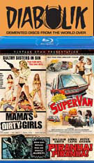 abused gimmick of slapping the word "grindhouse" on a package of multiple scratched-up '70s movies was long gone, Code Red is bringing it back into circulation with this Blu-ray triple feature of unrelated drive-in programmers from the Me Decade. First up is Mama's Dirty Girls, an above-average crime/T&A films obviously meant to cash in on such recent films as Bloody Mama, Big Bad Mama, and Bonnie's Kids. Here the obligatory Hollywood star is Gloria Grahame, the scandal-ridden Oscar winner whose career had suffered major hits the previous decade. She was still enough of a recognizable name to market the film though, and she's perfectly cast here as Mama, a cold-blooded matriarch obsessed with owning property who has a sweet scam set up. We see it in action right at the beginning as her seductive daughter, Becky (Pets' Rialson), seduces Mama's current husband only for Mama to burst in and accuse him of statutory rape. He's contrite right away and agrees to write out a sobbing confession letter that also doubles as a suicide note when Mama and company bump him off.