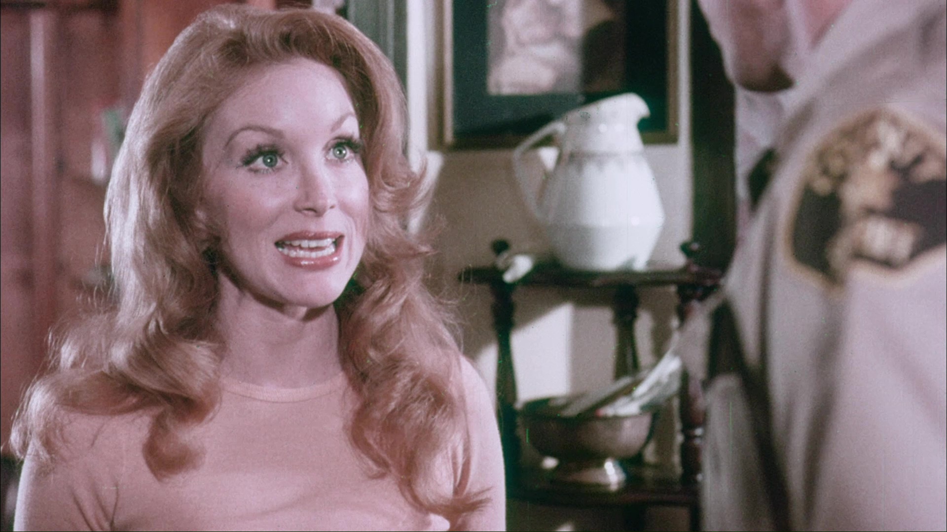this film was penned by Gil Lasky (also behind the wonderfully perverse Blood and Lace with Grahame) and directed by John Hayes, the modest but fascinating helmer of such films as Grave of the Vampire, Garden of the Dead, The Hang Up, and Sweet Trash. It even has Rialson disrobing over the opening credits to make sure butts stay in the seats, and while the rival murderer scenario loses a bit of steam in the second half, it's plenty of pulpy fun. There's even a small role here for Anneka Di Lorenzo, the ill-fated Penthouse Pet who appeared in Caligula and Dressed to Kill! The film first turned up on VHS from Trans World back in '86, running 79 mins. 39 secs., a bit short compared to the announced theatrical running time of 82 minutes. (If anyone has a 35mm print handy, maybe they can verify whether that's accurate.) The Code Red version is faded and features a lot of damage, with some heavy splices hacking out several lines of dialogue throughout. As a result, it runs about a minute shorter than the VHS. The DTS-HD MA English mono track is, like its co-features, listenable but in less than prime condition; this film fares the roughest of the three since it has a nasty patch in the second reel with a loud buzz overwhelming the soundtrack for a few minutes.