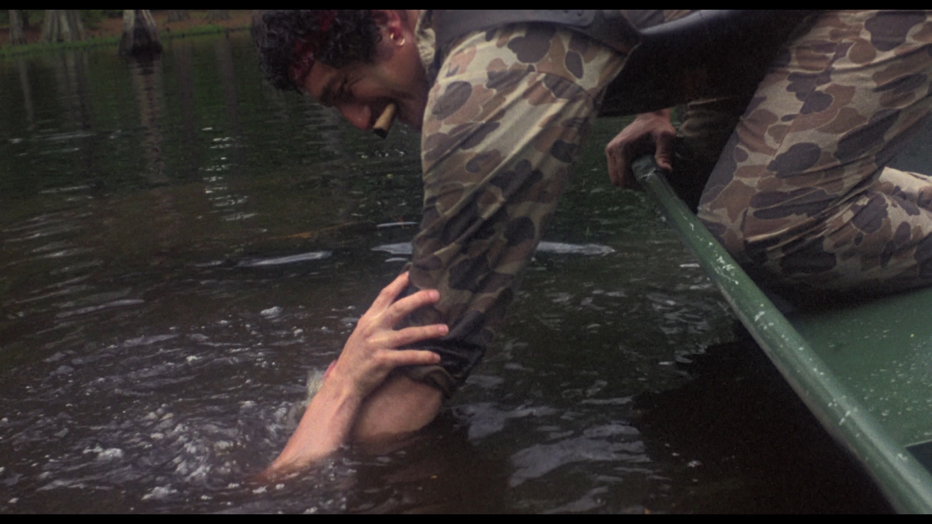 its attempts to replicate the appearance of a comic book without a huge budget. The rubber suits can be distracting, and the fancy wipes (a la Creepshow) come across as affected rather than creative. On the other hand, Barbeau is a joy to watch blasting bad guys, cracking one-liners, and even having a few tender interludes with our mutated hero. Jourdan also makes a wonderfully slimy bad guy (circa Octopussy), despite his silly appearance during the last reel. Friday the 13th composer Harry Manfredini even pops up for the score, which features his usual harsh violins and a pretty good love theme that complements the visual beauty of the swamplands (filmed in South Carolina).