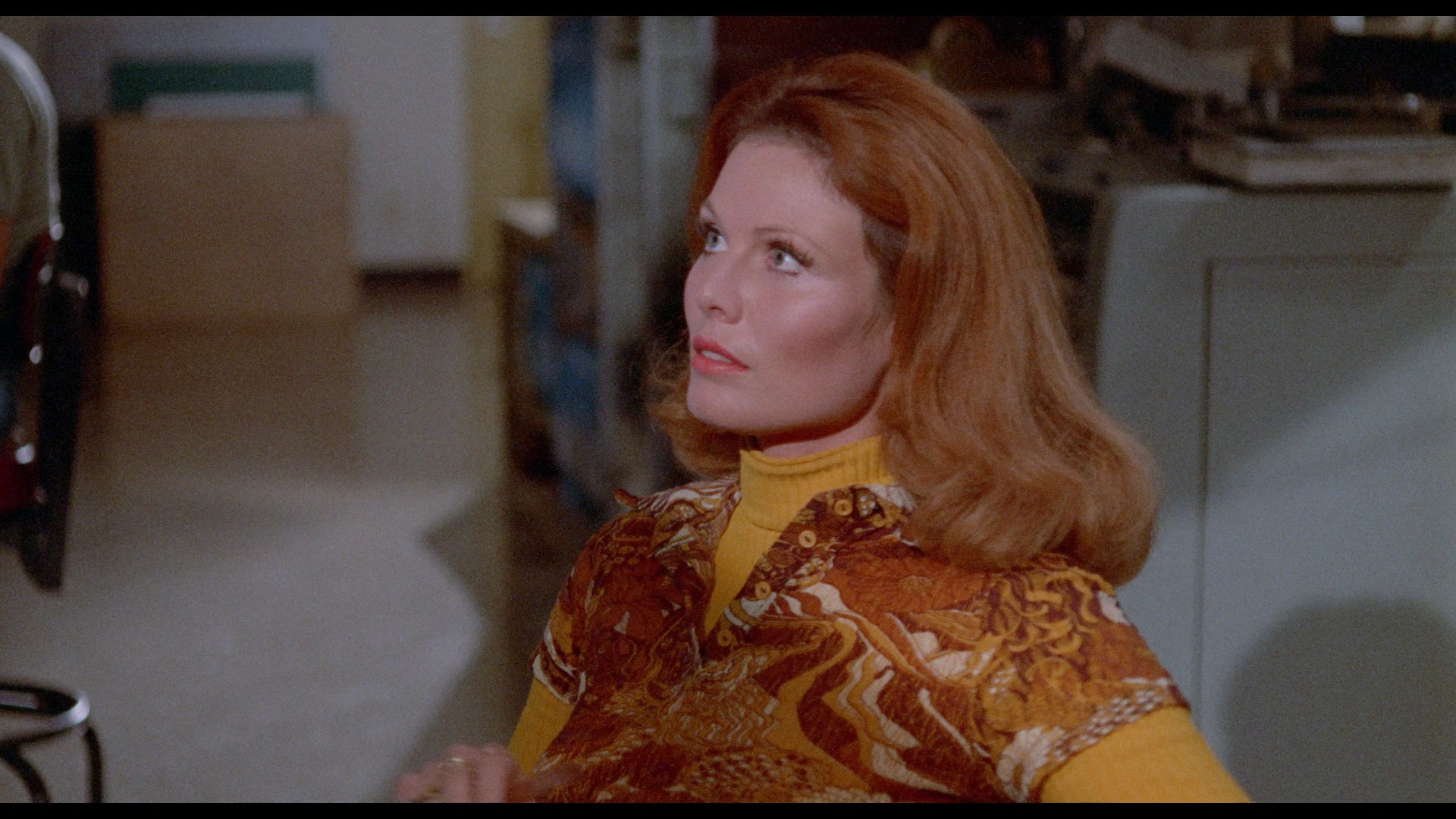 transfer yanked from a heavily edited TV print that lops out all of the nudity (and much of the storyline in the process); ignore the reviews on Amazon complaining about those pieces of ridiculous junk since Code Red's DVD release from 2010 featured the raunchier R-rated cut familiar from the old VHS days on Continental Video. As the packaging prominently states, this anamorphic, uncut presentation is taken "from UCLA/the director Stephanie Rothman's archieved[sic] print," so while it's definitely on the "grindhouse"-y side (visible damage at reel changes, some blown-out scenes here and there), it still marked a major step up over past editions. In 2016, the label revisited the title for a Blu-ray edition, pulled from the same source (damage marks are identical) but with slightly toned-down and more realistic flesh tones.