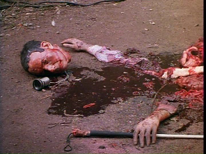 upstart Long Island-based indie company who alternated its flagship Toxie films, quickie genre films, and oddball pick-ups with an occasional epic like this. Part of a string of films directed by Troma's Lloyd Kaufman himself, this is very much in the same company as Tromeo and Juliet and Poultrygeist with its expanded roster of characters and settings, elaborate gross-out effects, and attempts to break through to a wider theatrical audience than usual. About as Troma as a movie can possibly get, this one announces its intentions right away before the credits as we see a guy getting beaten to death with his own ripped-off leg and a sunbathing woman getting her fetus pulled out in a very rubbery fashion. From there it's a neverending stream of movie production jokes, cameos, and splatter set pieces that were almost entirely censored if you were unlucky enough to rent the R-rated version back in the day.