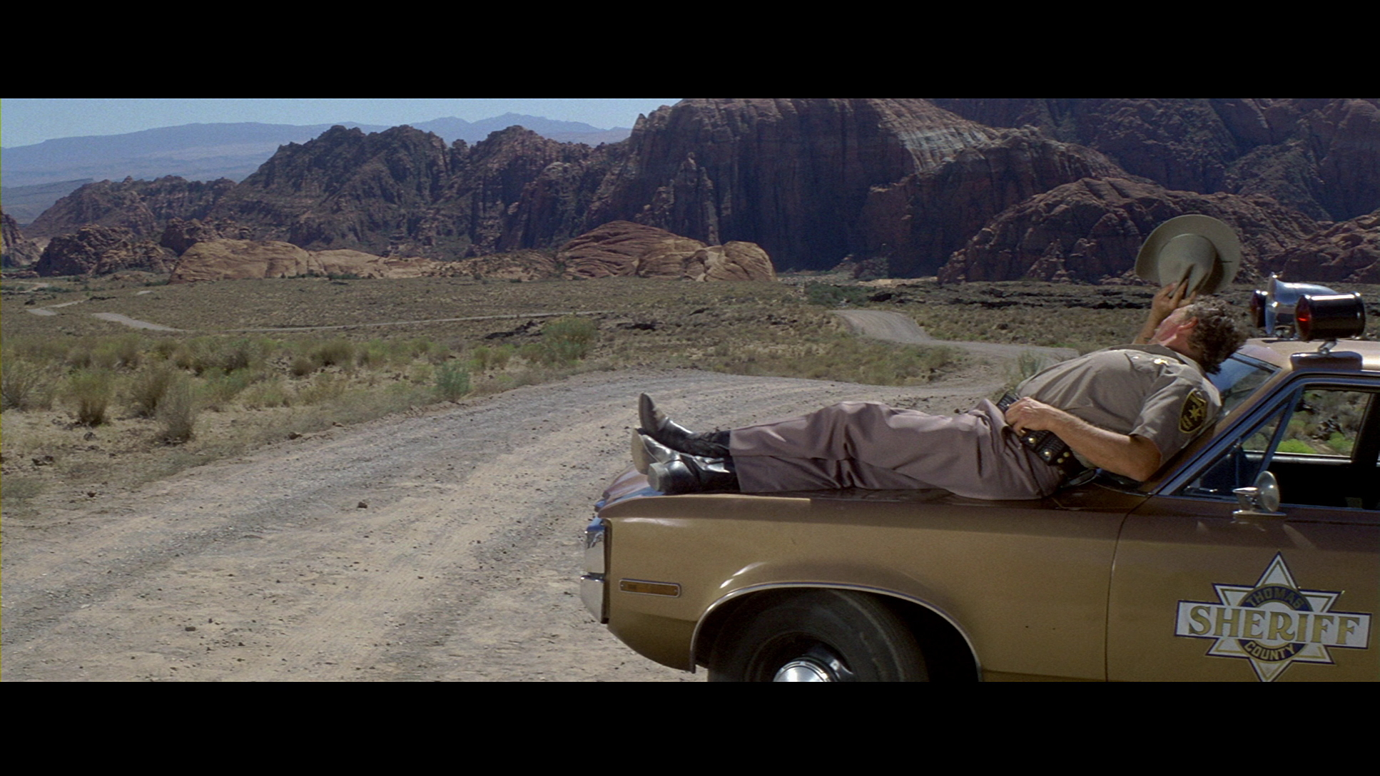 one of the film's greatest assets, combining crisp desert vistas with gleaming, menacing shots of the car careening through dusty highways; it's an unusual way to design a horror film, but it certainly sticks in your memory.