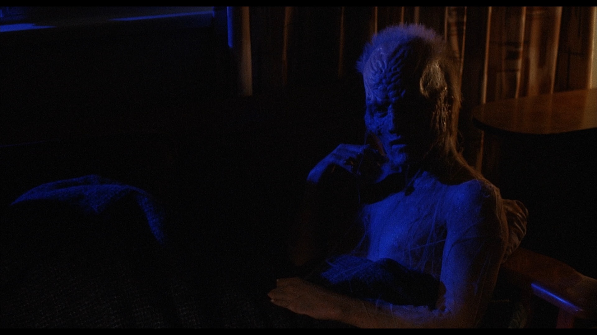 Class" (12m42s) with Young in his studio, a storyboard to film comparison (6m59s) with optional Walas commentary, the original EPK (5m10s), and extended EPK interviews with Walas (2m41s), Stoltz (3m35s), and Zuniga (3m31s). A goofy deleted scene (1m28s) at a burger join shows Martin getting even with some obnoxious kids, followed by a less satisfying alternate ending (1m10s), a teaser, the theatrical trailer, and galleries for stills and storyboards. All of that is present on the Scream Factory disc, which also adds six new featurettes in the process. Cornfeld returns for "Fly in the Ointment" (8m12s) to chat about the road to getting this film made without the involvement of most of the original participants, while "Original Visions" (14m6s) features screenwriter Mick Garris (one of four on the film, also including Frank Darabont) recalling how he ended up on this film thanks to his Steven Spielberg connection and became part of a series he (partially) admired. He also goes into some of the differences in the version he prepared, including more of a focus on the "Brundlechild" and his abilities. One of the other screenwriters, Ken Wheat, turns up for "Version 2.0" (22m13s), explaining how he and his brother Jim came on this project after Silent Scream and Ewoks: The Battle for Endor with their genre expertise coming in handy after aborted plans to work on earlier iterations of Fright Night II and Apt Pupil. An untitled interview with cinematographer Robin Vidgeon (15m20s) goes into the look of the film achieved via the choice of film stock and the decision to fill the film with sunlight, with the experience in some ways echoing his earlier gig with first-time director Clive Barker on Hellraiser. A new interview with Young, "Big and Gothic" (18m34s), catches up with the composer noting how his good timing going into UCLA led to his career starting off with New World and featuring a number of key genre films including this huge orchestral assignment after finding the right gateway through Roger Corman projects. He also notes his favorite track from the score and notes a fun little in-joke in the soundtrack sequencing. (Dig the choice of T-shirt here, too.) Finally, special effects artist Tom Sullivan appears in the last of the punny-titled featurettes, "Pretty Fly for a Fly Guy" (17m45s), explaining how he came on this film just after a terrible personal tragedy and approached this film with gusto after admiring the Cronenberg film. Again the image quality here is excellent and true to the look of the theatrical presentation (very colorful and kind of gritty), with DTS-HD MA 5.1 and 2.0 options really showing off the music in all its thunderous glory.