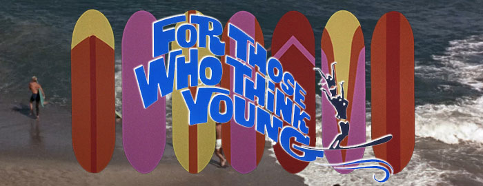 Beach Party in 1963 and its numerous AIP offspring starring various combinations of Frankie Avalon and Annette Funicello, it's surprising every studio around didn't try to cash in right away before the festivities finally puttered out in 1967. However, most of them tried to get in on the action a little with one or two films along the way, and United Artists' bid came early on with For Those Who Think Young. Lifting its title from the new Pepsi Cola slogan ("Now it's Pepsi for those who think young") and prominently featuring the soda throughout, the film follows the usual formula with a very episodic plot featuring a strange array of teen idols and older character actors all tossed into music and comedy scenarios.