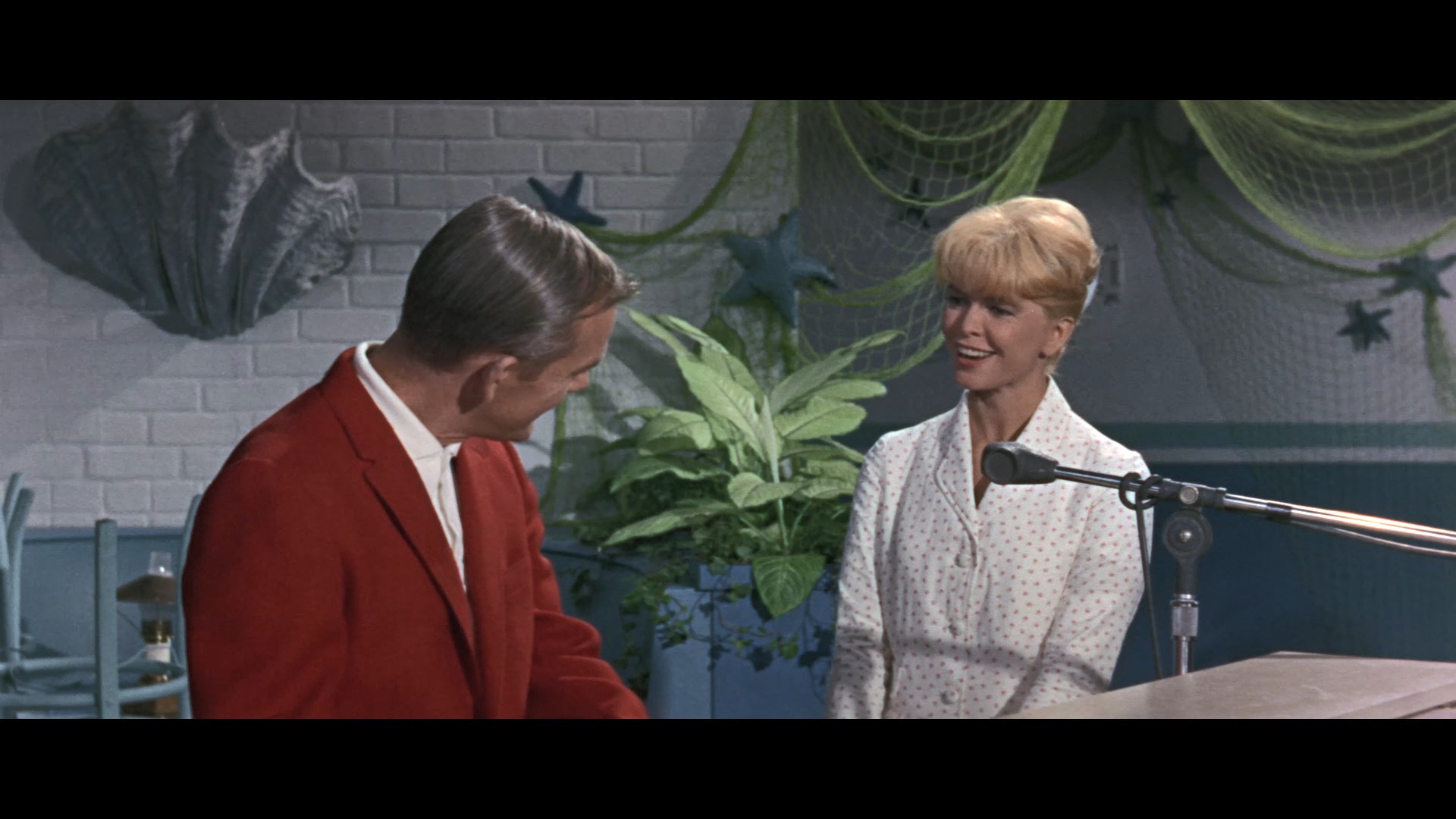 gets a little bit of breathy crooning, Lynde and Woodbury do a club medley you won't believe, and Denver delivers the most unforgettable moment in the film (for better or worse) by painting his face, which gets half buried in the sand, to deliver a surreal party song called "Ho Daddy." That scene alone was enough to have channel surfers stopping in their tracks for years, though why the powers that be decided to keep Sinatra, who would become the most famous singer in the entire cast, away from the microphone is anyone's guess. At least she and Denver have some nice chemistry together and actually make for a more appealing couple than our leads; of course, Denver (who was famous at the time as TV's Maynard G. Krebs on The Many Loves of Dobie Gillis, which had just gone off the air) would famously reunite with Louise for Gilligan's Island, which started airing three months after this film opened.