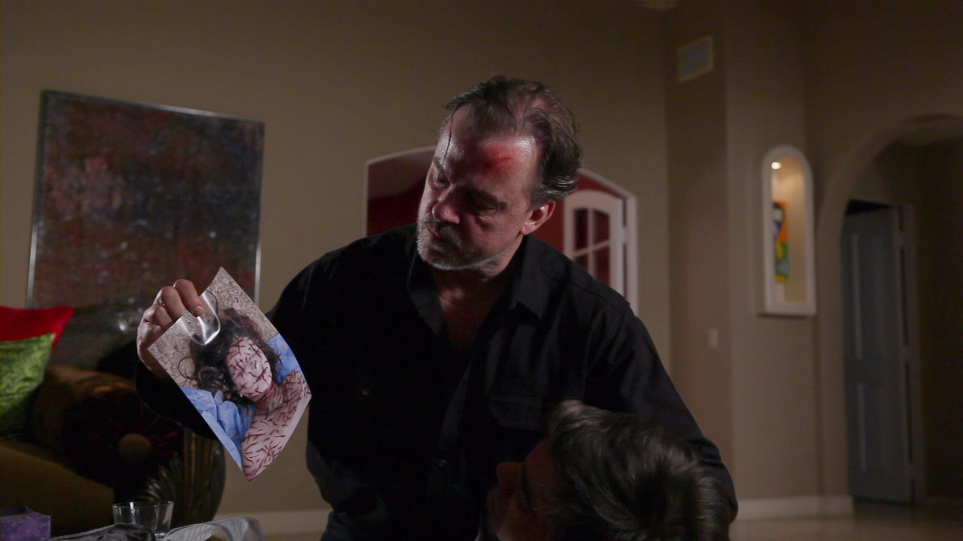 Where you personally stand on the issue will most likely get an airing here as the film juggles a lot of balls in the air dealing with arrogant movie director Lance (Newcomer), who's ditched his aspirations at creating real cinema and now makes a killing at the box office with a trio of films in the sadistic A Thousand Cuts horror series. One night at a party at his house mingling with various movers and shakers, an unwelcome guest intrudes in the form of Frank (O'Keefe), who has to slip through the shrubbery after being stopped by the security guard. Also at the party is Lance's sister, Melanie (Rulin), whom he dominates to a creepy degree. The party comes to an abrupt end when a sparkler goes off on the lawn atop a brick and a photograph of a young woman marked "R.I.P.," though Frank, claiming to be an electrician, sticks around after the other guests leave. What starts off as an amiable conversation quickly turns nasty, as Lance's films had a tragic real-life consequence the director refuses to fully acknowledge... and with Melanie involved against her will, Frank intends to teach him a les Confined almost entirely to a single location and spending most of its time as a battle of wits between two characters, A Thousand Cuts falls in line with such previous films as Death and the Maiden, Hard Candy, and Closet Land, all of which oddly deal with the theme of torture without much explicit detail. This one tosses in the idea of cinematic influence, a touchy subject given the reliable political scapegoating of movies, video games, and/or music every couple of years. Any real conclusion is avoided here since the focus is more on a filmmaker who resorts to cinematic sadism for a quick Shot on what appear to be consumer-grade HD digital cameras, A Thousand Cuts look pretty typical for a low-budget production of the time; the bright scenes inside the house look pretty decent and colorful, while the darker exterior scenes are far more erratic and tend to become more sludgy and noisy at times. The film is available from Horizon (distributed through Kino) as both a Blu-Ray and DVD, with the former obviously benefiting from the uptick in resolution and looking about like what you'd see on an average HD cable broadcast. Audio is presented in DTS-HD 5.1 and 2.0 stereo options, with the former actually boasting some consistent and active rear channel activity and making for a more enjoyable presentation. The only extras are the trailer (which again tries to make this look way more vicious than it really is) and a small gallery of promotional stills.