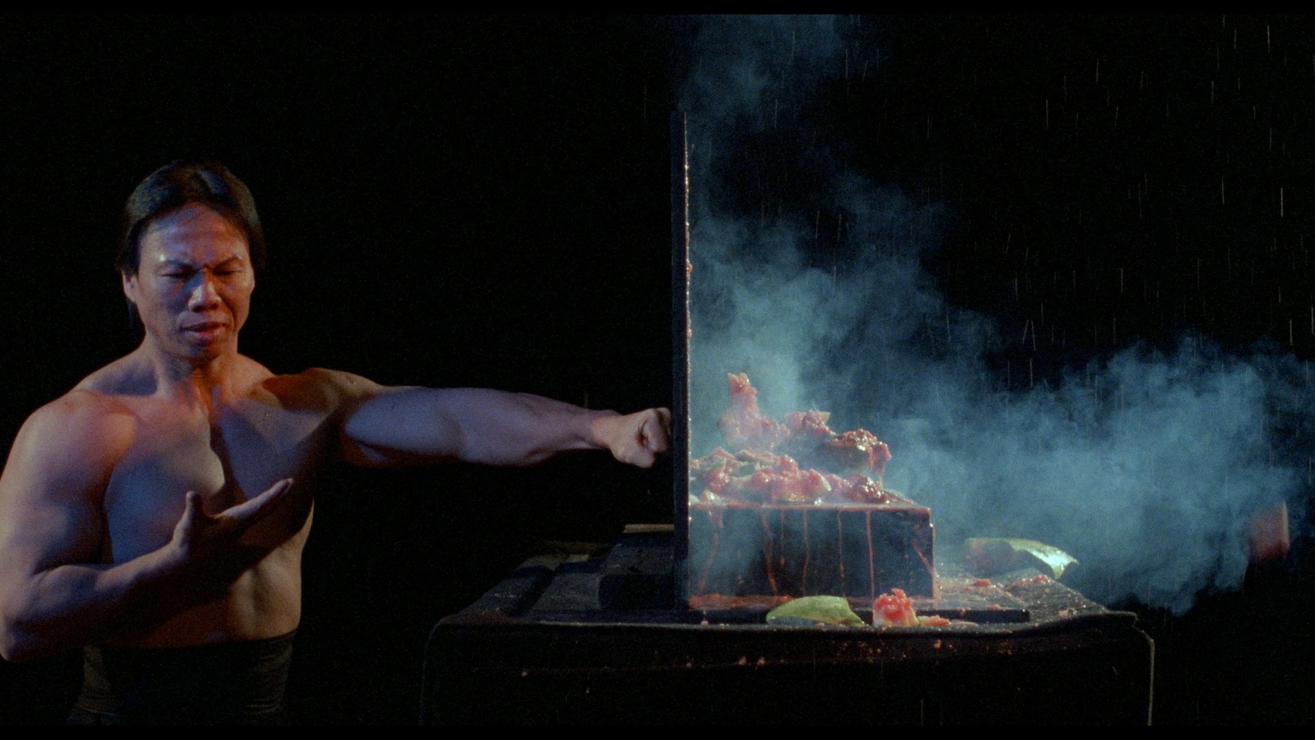 Though the film is set up as a murder mystery for the first half hour, it shouldn't be much surprise when you look at the billing that a sinister-looking Bolo Yeung is tied to the crimes as he goes around scouting the big martial arts tournaments. Along the way you get a lot of fight scenes, pounding synth music, clunky cop dialogue, and Rothrock being a great scene stealer as always. Plus you get extra treats like a karate tournament where Merhi gets to show off his machismo by grabbing boiling-hot chains, sticking fighting, bloody finger scratching, neck snapping, and a big showdown in a warehouse with cardboard boxes flying all over the screen.
