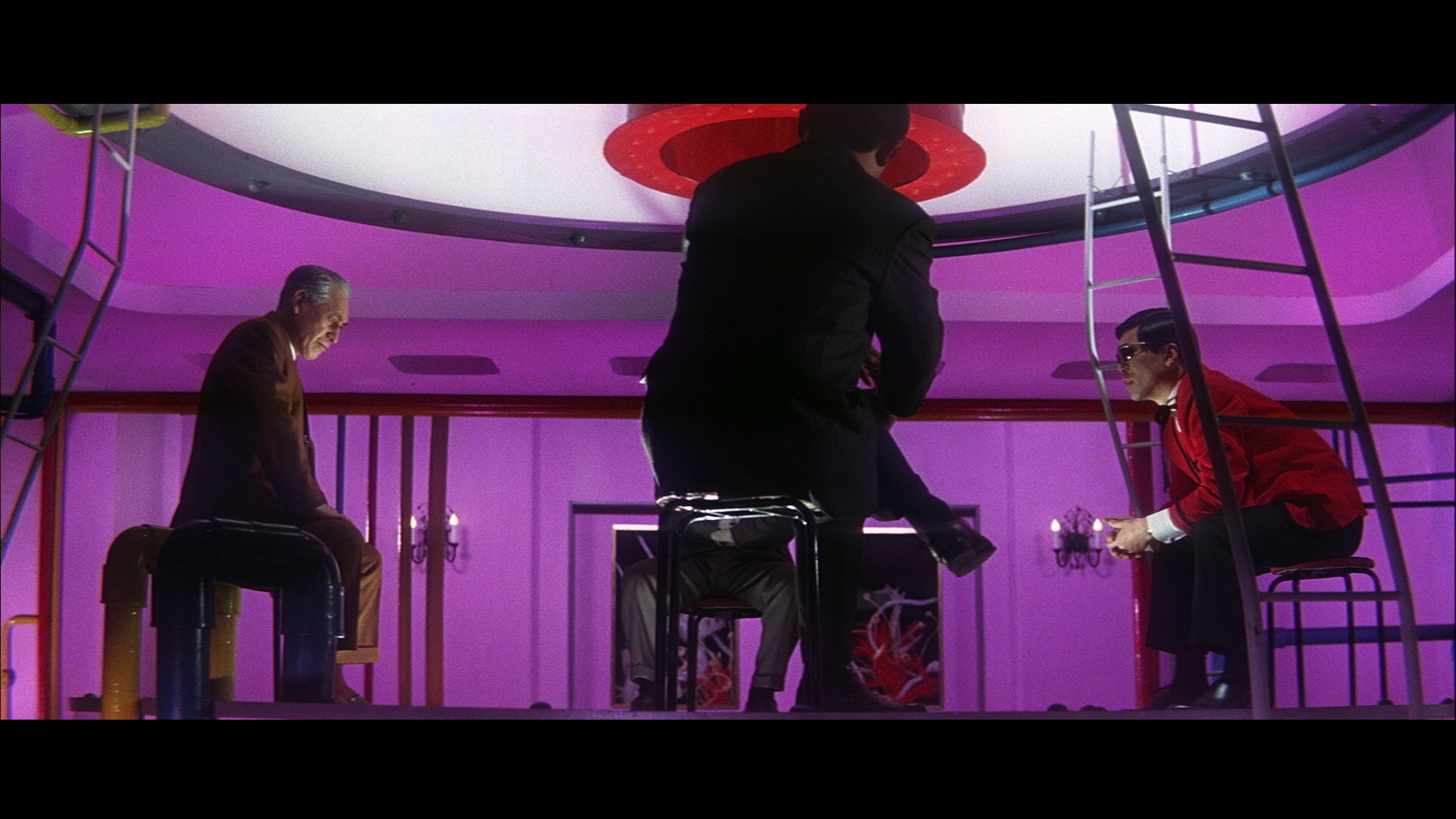 Of all of Criterion's releases in the dawning days of DVD, this one needed an upgrade more than any other. Finally salvation arrived courtesy of their 2011 HD upgrade to Blu-Ray, with a remastered DVD reissue as well. The Blu-Ray is definitely the preferred option though as it finally conveys the candy-colored intensity of the film's original color schemes, with an eye-popping array of hues in the art direction ranging from lavendar and ochre walls to cherry-colored telephones. The original framing has also been mercifully restored, and the entire experience is much easier and more enjoyable to sit through with all of these original aesthetic elements finally restored. The original Suzuki interview is carried over, while a new one with him and assistant director Masami Kuzuu is also included with more details about their Nikkatsu days, the casting process, and the logistics of mounting pop art sets in a limited time period. The original trailer is also included along with a liner notes booklet which replaces the original notes with new ones by critic Howard Hampton, who rattles off seven of the film's key moments and puts it in context with the spy and crime film craze of the era. Definitely a welcome improvement in every department.