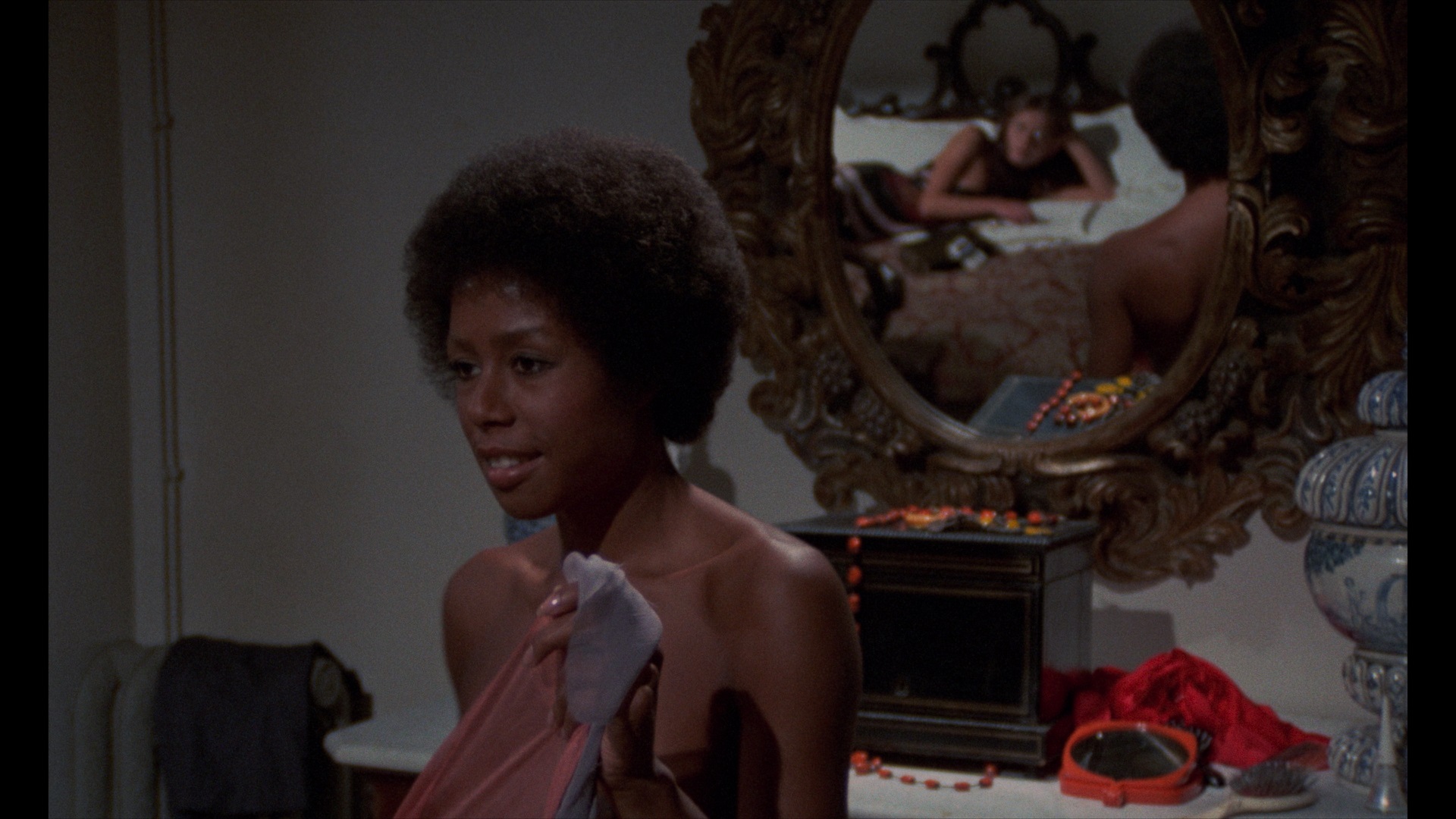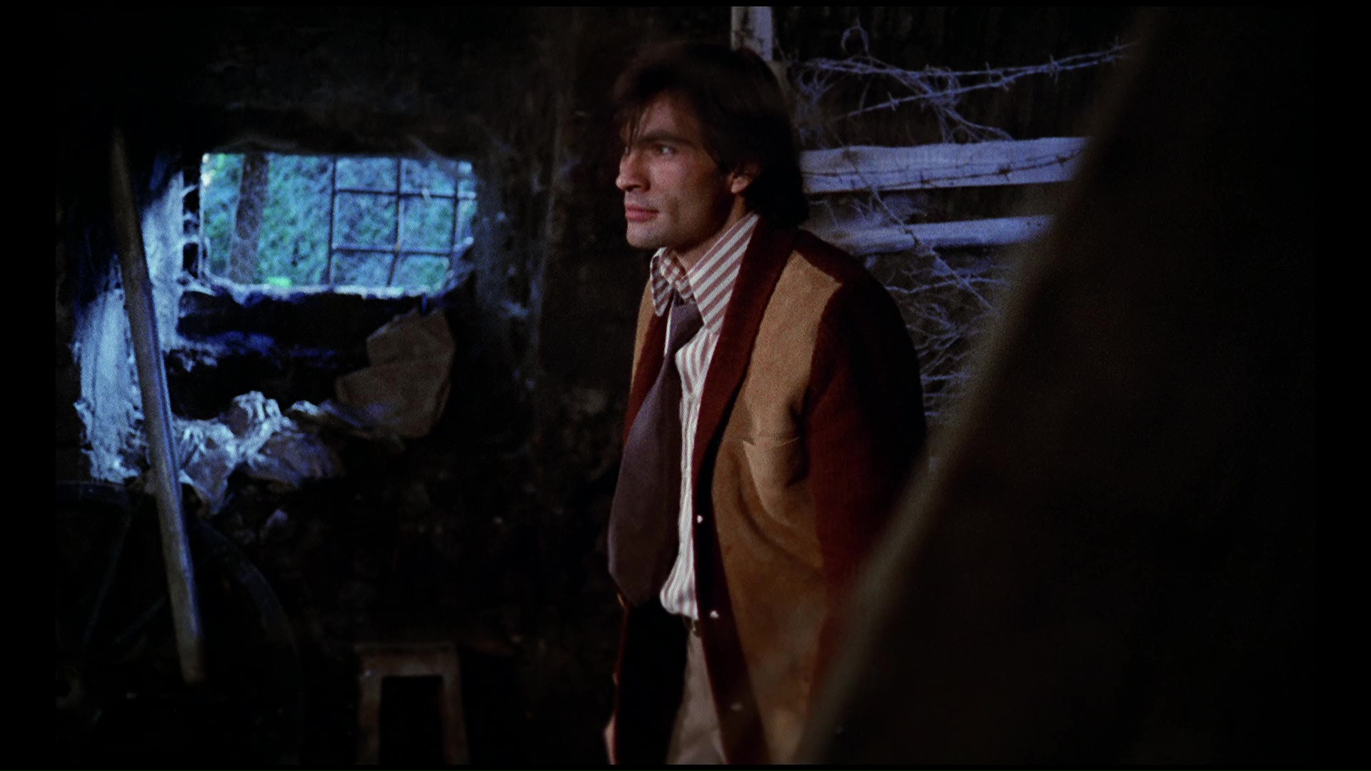 In 2024, Arrow revisited Martino's film for a 4K UHD release in the U.S., featuring the 94-minute Italian and 90-minute English export cuts of the film presented in HDR10-compatible Dolby Vision. It's touted as a brand new 4K restoration, done from the ground up here with color timing adjustments throughout ranging from subtle to dramatic. The result is quite spectacular in playback with a far wider gamut of colors on display and, most significantly, a greater level of legibility during the darker scenes. In particular the woods stalking scene, though still appropriately nocturnal, is much easier to make out than ever before. Frame grabs in the body of this review are from the UHD (though 1080 at the moment) with comparisons below. The LPCM 1.0 English and Italian tracks still sound great and feature the same audio and subtitle configurations, as well as title sequences for both languages (and the U.S. credits as an extra). All the extras carry over here-- audio commentary, the interviews (Sergio Martino, Luc Merenda, Ernesto Gastaldi, Federica Martino, Mikel JJ. Koven), the 2017 Q&A, and the Italian and English trailers, plus the same booklet.