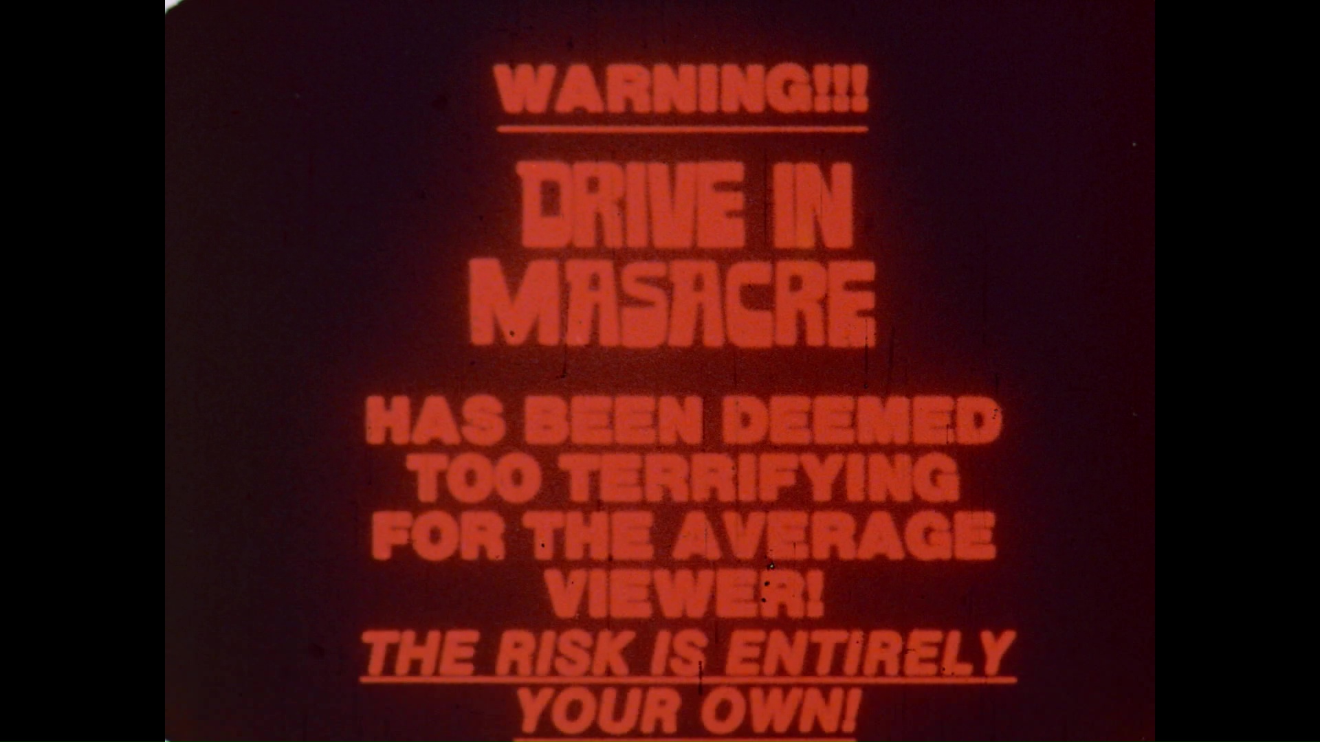 Mark of the Devil, Night of the Lepus, Race with the Devil, The Hills Have Eyes, Sisters, Mark of the Devil II, The Devil's Rain, The Abominable Dr. Phibes, They Came from Within, Dracula's Dog, Satan's Cheerleaders, The Exorcist, The Fury, Black Christmas, Schizoid, Don't Open the Window, The House That Vanished, The Blood Spattered Bride, Psychic Killer, The Medusa Touch, Drive-In Massacre, Son of Blob, The Devil's Nightmare, Theater of Blood, The Spectre of Edgar Allan Poe, Equinox, Tourist Trap, Phantasm (an '80s reissue one), the crazed combo of Curse of the Headless Horseman and Carnival of Blood, The Texas Chain Saw Massacre, The Night Visitor, When the Screaming Starts, End of the World, Attack of the Killer Tomatoes, Vampyres, Night of the Living Dead, Dawn of the Dead, Jaws, The Sentinel, Carrie, The Mutations, Son of Dracula (a cool, very rare spot), Dracula Sucks, Children Shouldn't Play with Dead Things, Night of the Bloody Apes, Blood Orgy of the She-Devils, The Devils, Don't Look Now, Lord Shango, A Name for Evil, Homebodies, Don't Look in the Basement, Dead of Night, Shanks, Grizzly, Day of the Animals, and Rattlers.