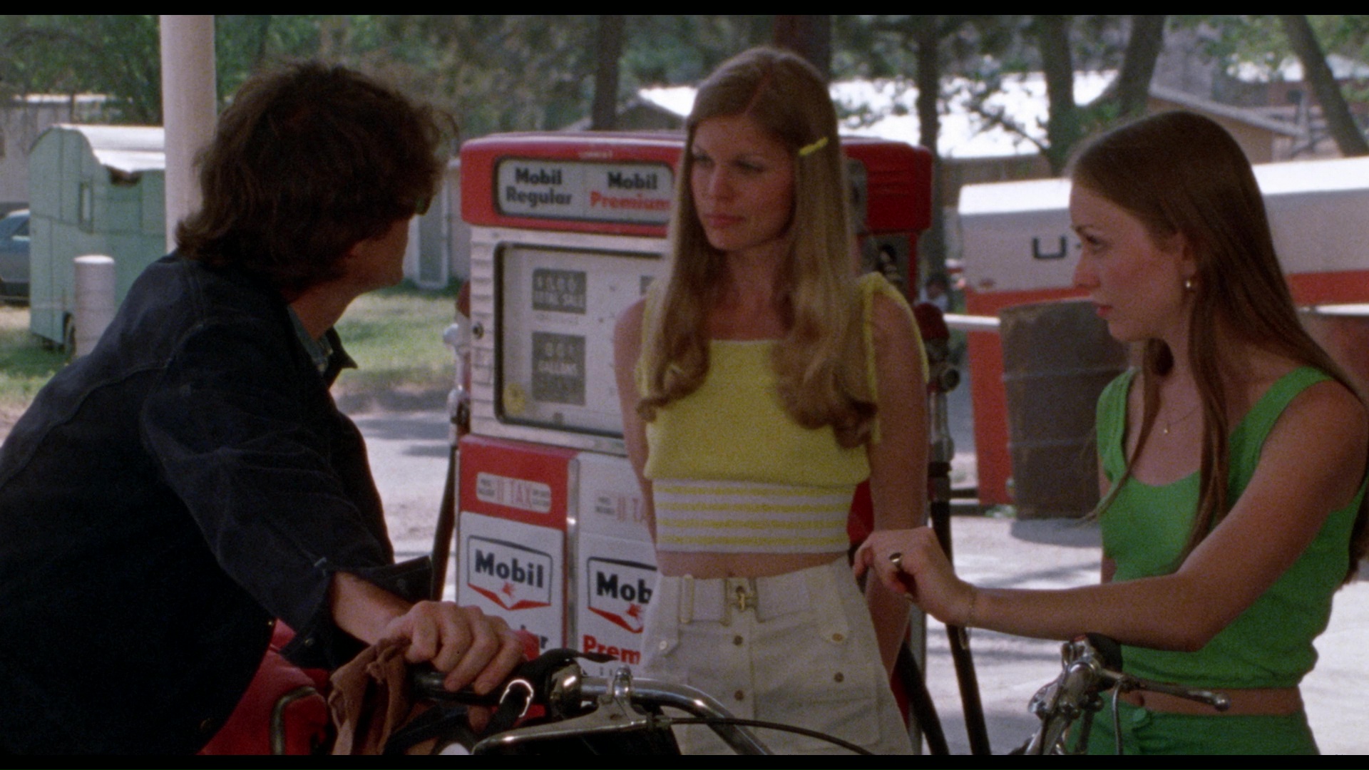 (One camera was clearly malfunctioning during a few scenes and left a couple of thin lines on the film as it was being shot.) The DTS-HD MA English mono track sounds great as well (optional English SDH subtitles included), with the cheerful, catchy library music faring well (including frequent use of Alan Moorhouse's "That's Nice"). A new audio commentary moderated by the label's Joe Rubin brings together one-shot director Earl Barton and actresses Cathy Worthington and Dina Ousley, all of whom still regard the film (and the departed King) quite fondly as they chat about its theatrical opening, the production equipment, the desert shooting conditions, and plenty more. Now a realtor, Fogarty returns for a new video interview, “Taking the Trip” (14m29s), chatting about how she ended up being cast in the film, didn't have the best agent submitting her for parts, wound up in jail during the shoot due to traffic infractions, and even has a bit of a YouTube presence. Also included are a still gallery (2m24s), the trailer, and a trio of TV spots.