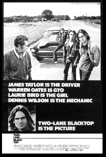 Color, 1971, 102 mins. / Directed by Monte Hellman / Starring James Taylor, Warren Oates, Laurie Bird, Dennis Wilson / Criterion (US R1 NTSC), Anchor Bay (US R1 NTSC) / WS (2.35:1) (16:9) / DD5.1