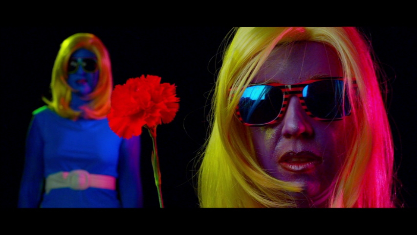 on't let the low-budget veneer of the opening scenes fool you; this movie is nuts. What starts off like a talky home movie shot among friends over a lazy summer goes in some astoundingly weird directions, including the protracted trip sequence which, for ten minutes at least, suddenly swerves smack into Steven Sayadian (and if you don't know who that is, watch this). The '80s influence comes into full bloom here for a performance art segue loaded with day-glo colors, fish heads, non sequiturs, and wild scope compositions, spinning the whole movie on its head and announcing a second half far darker than the first. It would be wildly unfair to talk about where things after this point, but the most infamous bit involves sexual gratification and a blender. As a cinematic experiment it doesn't all completely work (some viewers who like the second half are bound to be a little frustrated with the first, and vice versa), but if you want to see something really different, here you go.