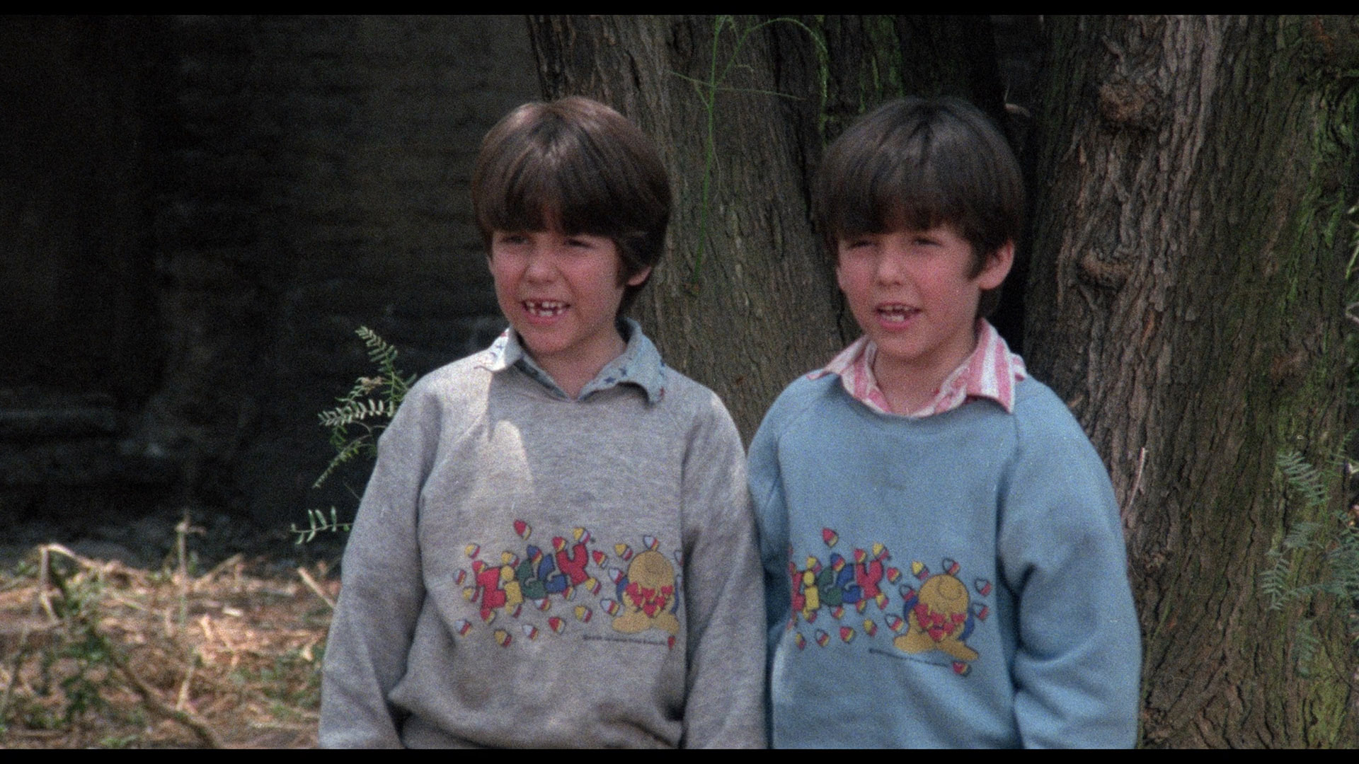 The presentations here are comparable to the other Mexican horror titles from Vinegar Syndrome, retaining their natural film grain and the first film faring better thanks to a 4K restoration from the original camera negative. The second film is from a 35mm archival positive and has some intermittent speckling throughout, but it's still a massive upgrade over the DVD. Both films have optional, newly translated English subtitles and come with DTS-HD MA Spanish 1.0 mono tracks. On the extras side you get four new video interview featurettes starting with actors Gianella Hassel and Gabriella Hassel(11m36s) talking about working on the first film (originally entitled The Doll from Hell), their careers before and after, and their thoughts on the film's following even among younger viewers. Then composer Eugenio Castillo (9m49s) talks about exploring the tools available at the time to create the score, the process of writing the music to a VHS rough cut of the film over a three-week period, and the textures he was going after with his choices of electronics. In "Backlot Rats" (18m55s), actors Carlos East Jr. and Ernesto East are interviewed in English about playing the twins in the first film, working with Cardona, and going on to work on Marvel films behind the scenes after being inspired by the effects they saw on this production. Finally Jorge Farfán (12m56s) explains how he got involved doing the special effects on the first film, including the creation of the medallion, and his family's overlapping history with the Cardonas and the Galindos.