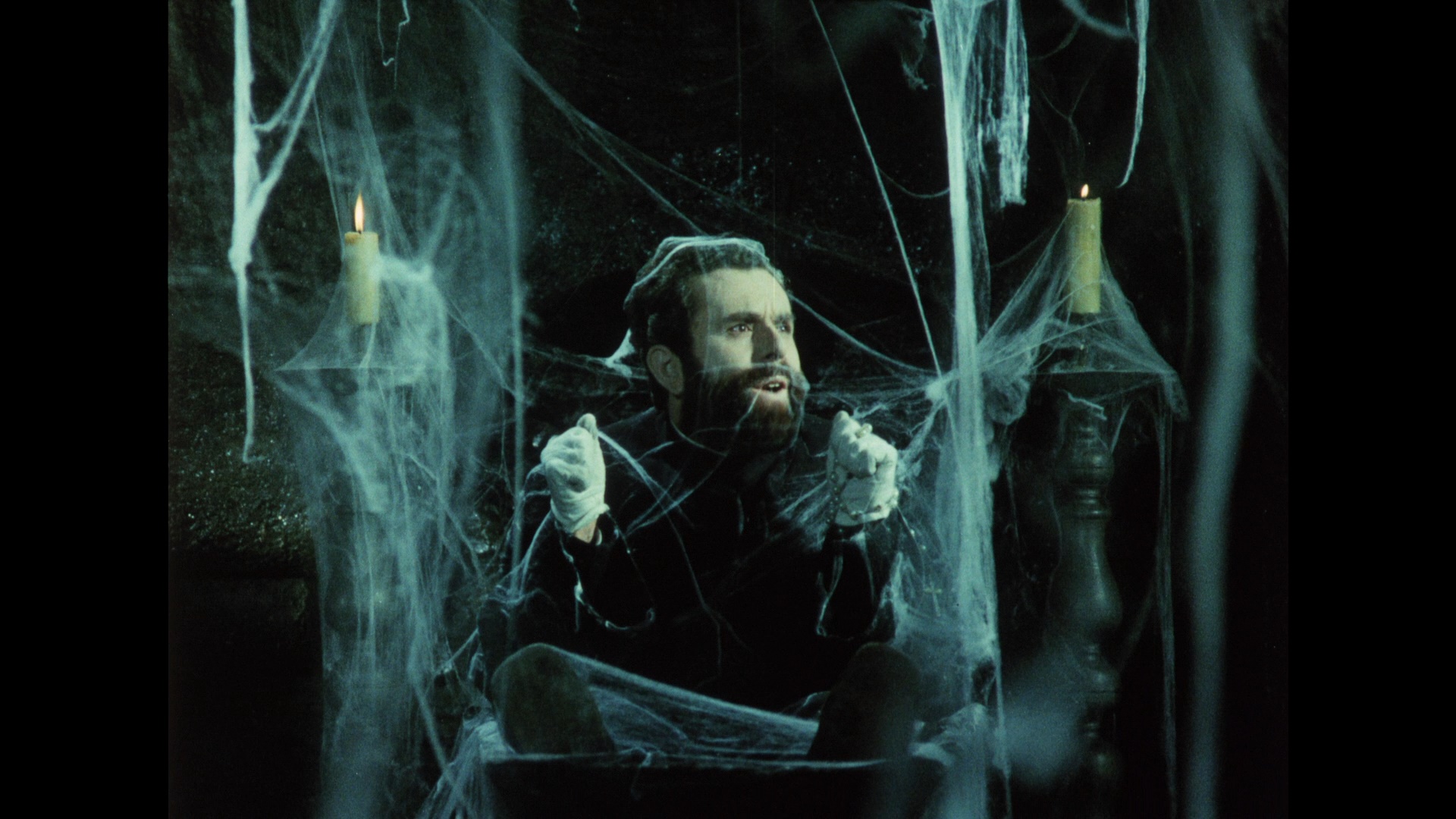 over here, and the top notch Hames and Bird commentary from the German disc is here as well. You also get a robust new audio commentary by the Projection Booth podcast gang (Mike White, Kat Ellinger, and Samm Deighan), who get a lot of mileage talking about the political situation at the time, the use of genre films (and fairy tales) to circumvent governmental restrictions, Nezval's adherence to the Communist Party that probably made the film easier to get into motion, the merits of the film as an adaptation, the subversive depiction of Catholicism, and literary cousins like The Monk. All three of the Jires shorts are here -- "Uncle," "Footprints," and "The Hall of Lost Footsteps" -- with the big news being the first presentation ever of the uncut, much longer version of "Footprints," which now clocks in at 20m53s and plays out far more satisfyingly here in its complete form.