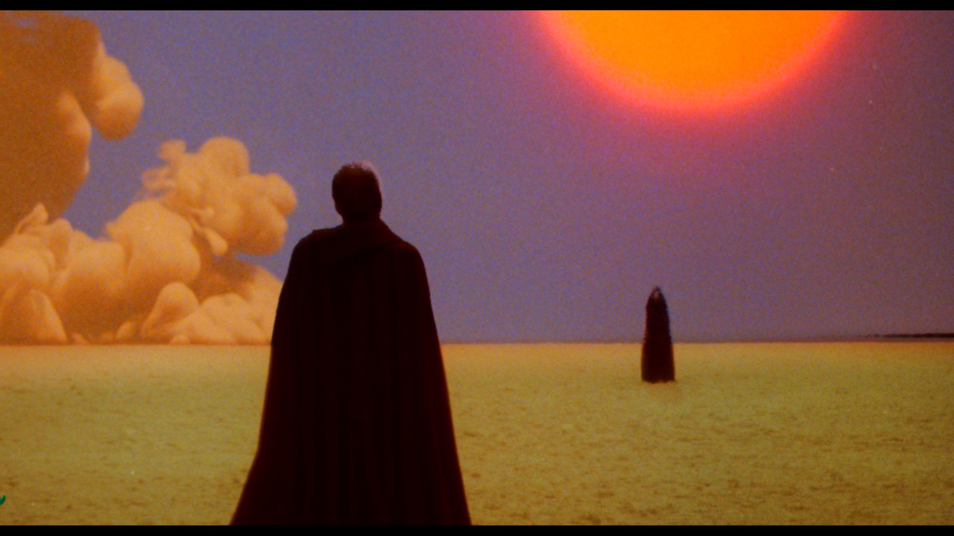 In 2026, Arrow revisited the film as a 4K UHD edition with a new scan from the camera negative, featuring HDR10-compatible Dolby Vision grading and LPCM 1.0 English mono audio with optional English SDH subtitles. The upgrade is quality is extremely obvious with a far wider and healthier color spectrum here than before; those greens and oranges in particular looking striking here, and even the numerous optical shots benefit from the bump in resolution. The three featurettes are carried over here, plus the reissue trailer and a 41-image gallery plus new bonus material. An audio commentary by BJ & Harmony Colangelo riffs jokily on the film and covers '70s sci-fi and horror films, the nature of basketball, the pop culture-created idea of the '70s, and more. The visual essay "A Biblical Battle for the Cosmos" (19m15s) by Meagan Navarro notes how its production history and desire to tap into the growing sci-fi market resulted in what we have today, essentially taking Beyond the Door several steps further for the international market. In "A Cosmic Right to Choose" (11m25s), Willow Catelyn Maclay presents an intriguing look at the film in the larger context of the American abortion debate which impacted numerous genre films from Rosemary's Baby through Immaculate and the related idea of the monstrous child within organized religion. Also included is an insert booklet featuring new essays by Heuck, Richard Kadrey, Craig Martin and Mike White.