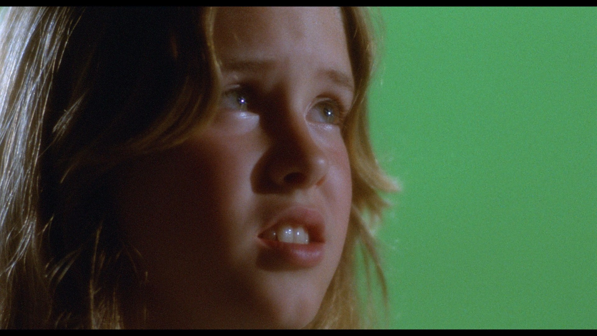 Not surprisingly this was essentially the handiwork of Ovidio G. Assonitis, the shameless producer who brought you the most successful Exorcist imitation from Italy (Beyond the Door) and whose films were usually trimmed down significantly for stateside release. This was no exception to that rule, but we'll get to that in a minute. Our tale begins in some otherworldly realm where a messianic blond guru (Nero) sits around telling bald alien kids the story of Sateen, a "moo-tahnt" galactic villain intent on spreading his destructive force throughout the universe by procreating as much as possible. Enter Jerzy (Huston), who informs us that he's just had a vision showing him the latest of Sateen's descendants: Katy Collins (Conner), an eight-year-old living in Atlanta, Georgia whom we first see watching a Hawks basketball game at the now demolished Omni Coliseum. Katy's mom, Barbara (Switchblade Sisters' Nail), is a chipper type happy to let her daughter ice skate and play Pong all day, but an evil corporation run by Dr. Walker (Ferrer) is intent on unleashing Katy's diabolical power and enlists her husband (Henriksen, basically reprising his role from the previous year's Damien: Omen II) and a bitchy nanny (Winters, using leftover fashion options from Tentacles) to make sure Barbara spawns another child to accompany Katy on her dark mission. Of course, this is