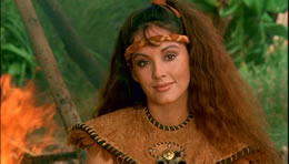 Paired up as the second feature on this disc is the following year's Barbarian Queen, a huge hit back in the VHS days and a frequent resident of video shelves across the country. It also spawned a sequel, 1987's inferior Barbarian Queen II: The Empress Strikes Back, which has apparently been set aside for a future double feature. Now Barbarian Queen is most notorious as the only starring vehicle for Lana Clarkson, the gorgeous blonde who appeared in a number of '70s TV shows, played the unforgettable Mrs. Vargas in Fast Times at Ridgemont High, and was shot to death by record producer Phil Spector at his house in 2003. Here she stars as Amethea, a survivor of a Roman raid on a small village who teams up with two other beautiful female escapees, Estrild (Shea, future director of Poison Ivy and Stripped to Kill), and Taramis (Forbidden World's Dunlap). Since the whole siege happened on her wedding day and her betrothed (Zagarino) is now in the clutches of the Romans, she and her sisters in butt-kicking infiltrate the city walls and recruit some gladiators to help on their quest. The indisputable highlight for sleaze fans comes