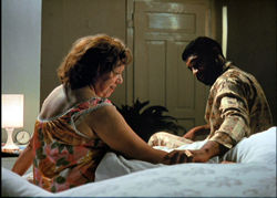 Four years after escaping from both a Turkish prison and a potential change of sexual orientation in the shower room in Midnight Express, late actor Brad Davis went over the edge in Querelle, the last film by Rainer Werner Fassbinder, who died of a drug overdose before the film's US premiere. The director's most blatantly homoerotic work (to put it mildly), Querelle throws aside the touchy gay politics of realistic studies like Fox and His Friends in favor of what can only be described as a hellish, horny mixture of Heironymous Bosch and Kwaidan. Derived more or less from a novel by revered thief/poet/novelist Jean Genet (who also inspired Poison and The Balcony), the fractured story follows the misadventures of Querelle (Davis), a sexually undecided sailor who winds up at a port in Brest and encounters a variety of colorful characters, including his brother, Robert (Hanno Pöschl), who is having an affair with saloon owner and singer Lysiane (Jeanne Moreau). Meanwhile her burly black husband, Nono (Günther Kaufmann), sets his sights on Querelle, whose lust is temporarily distracted when he impulsively knifes a fellow sailor to death and diverts the blame to Gil (Pöschl with different facial hair), a murderous criminal with whom Querelle begins to fall in love. Meanwhile Querelle's commanding officer, Seblon (Franco Nero), lusts from afar and begins devising his own agenda.