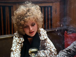 is a stylist's dream come true. Characters are constantly bathed in particular shades to emphasize their moral condition: Lola equals red, Von Bohm equals blue, and so on. Scene transitions are usually accomplished with elaborate dissolves in and out of focus, and the constant flow of cigarette smoke provides an appropriately gauzy visual texture. For some reason Sukowa remains one of the less internationally renowned actresses, which is a shame; she really cuts loose here with a magnetic performance, including one musical freak-out that gives Ann-Margret a run for her money. In a twisted sense, this is also one of Fassbinder's more cheerful films; the characters celebrate their corruption and infidelities, and as the seemingly incorruptible hero finds his scruples eroding with Lola's influence, the film closes on an ironic "happy" note whose consequences are left to be addressed in the viewer's mind.