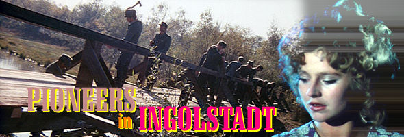 Though best known for his visually florid, emotionally overwrought warscapes like The Bitter Tears of Petra von Kant and The Marriage of Maria Braun, the prolific and self-destructive Rainer Werner Fassbinder began his career with low key, downbeat portraits in kitchen sink realism like Why Does Herr R. Run Amok? and The Gods of the Plague, whose titles give a fairly clear idea of their emotional timbre. In this respect, Pioneers in Ingolstadt is a pivotal work, sandwiched in between these two periods and offering a sort of backward glance at the style he was soon to leave behind.