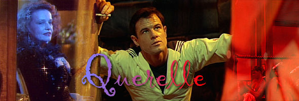 For those unfortunate enough to suffer through Columbia's old pan and scan VHS transfer, Querelle on DVD will look like a different film entirely. Fassbinder uses the entire scope frame to experiment with bizarre angles, distorting lenses, and deeply layered compositions and tableux, while the saturated colors which bleed all over the screen on videotape look more refined and tolerable here. The anamorphic transfer provided by Gaumont most likely comes from a PAL source, and for some reason in 16:9 playback the image looked a bit coarse and noisy (as if suffering from excessive digital noise reduction), while on another widescreen monitor it looked perfectly smooth and glossy. If it looks a little odd on your television, you might want to try another. The end titles sport a Dolby Stereo tag, though the film is presented in mono in both English and French. Davis, Moreau, and Nero provide their own voices, while virtually all of the other actors are very artificially dubbed in a manner that may cause even diehard Italian horror fans to bristle with annoyance. The alternate French track (which can be played with optional English, Spanish, or French subtitles) is a little easier on the ears, but it also suppresses or eliminates altogether most of the sound effects and music. (The UK disc from Second Sight is letterboxed but only retains the English dubbed option.) This unrated edition also runs about two minutes longer than the US edition; while there's still virtually no nudity in the film per se, a few sequences (such as Davis' forced manual stimulation of another sailor at knifepoint) are more explicit and may not have been faked. Inexplicably, the US disc's only supplements are trailers for The Opposite of Sex and sex, lies and videotape, which might give you an idea of where the marketing people are coming from.
