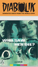 Deprived of a U.S. theatrical release for no clear reason, Who Saw Her Die? made its first American home video appearance in 2002 from Anchor Bay as part of a set including Short Night, Bloodstained Shadow, and The Case of the Bloody Iris, as well as a standalone edition that was later duped over by Blue Underground. Featuring the slightly shorter English-language export version only, the disc is mainly worth having for an exclusive Lado interview, "Death in Venice" (11m10s). A subsequent DVD from Shameless was notable for including the (very slightly) longer Italian cut of the film and the addition of English subtitles for the little bits of French dialogue (but only English for the main body of the film). Transfer-wise it looks indistinguishable from the U.S. release in terms of color timing and framing.