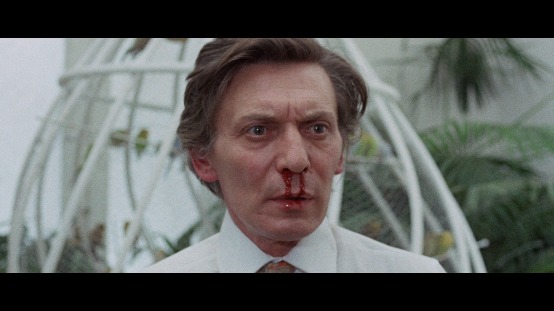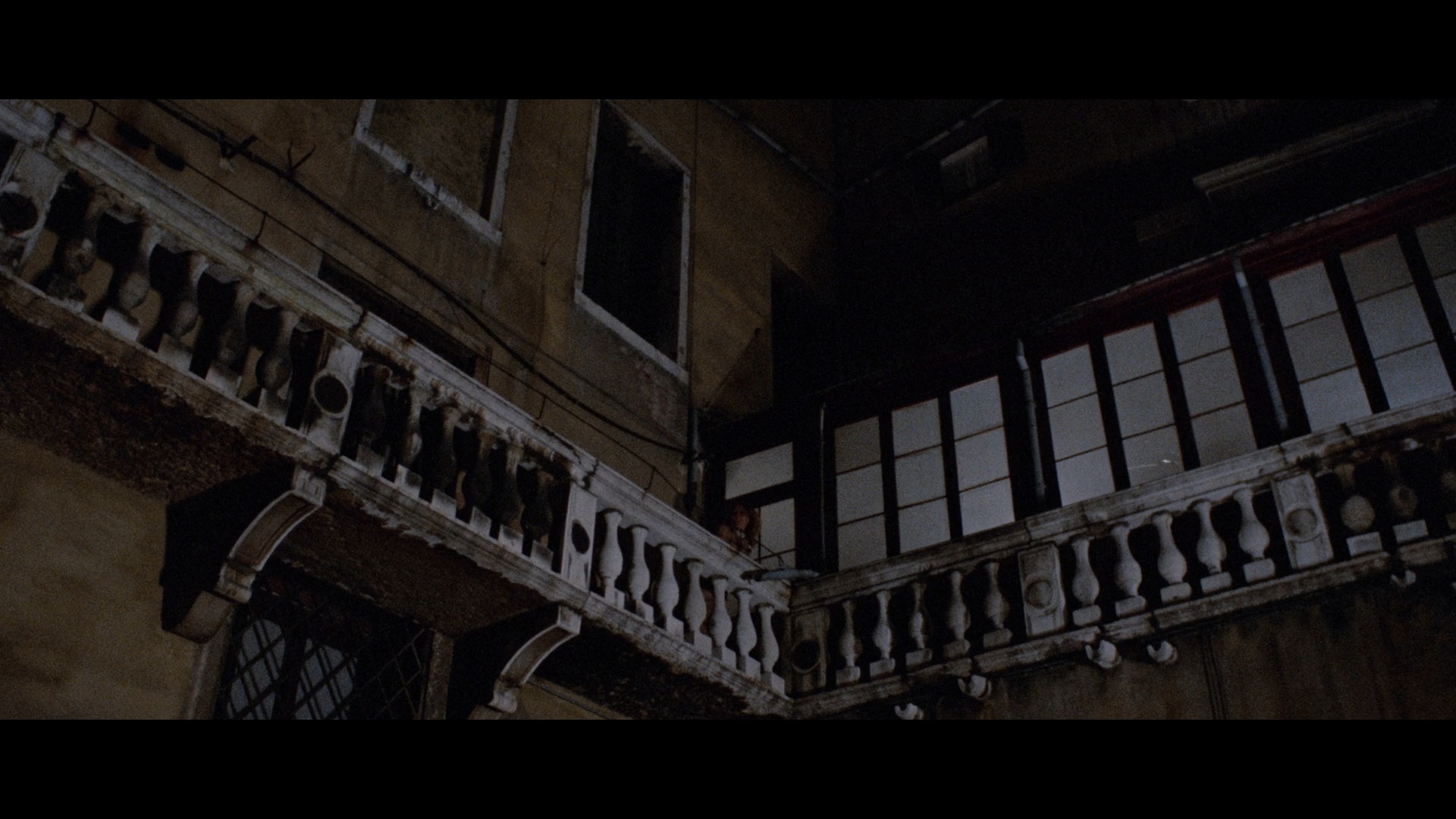 In 2024, Shameless finally brought the film to U.K. Blu-ray featuring the same excellent scan and looking comparable to the U.S. release, with DTS-HD MA 2.0 mono English and Italian audio options with English or improved English-translated subtitles. (Note that if you want subs for the little incidental French lines, you have to switch on the second subtitle track.) Three new Freak-o-Rama interviews are included here starting with "Ring a Ring o'Rosie" (36m40s) with Lado talking about the origins of the film (connected to Bernardo Bertolucci among other factors), the screenwriting process involving him and three other writers, the use of the Venetian setting, and his personal distaste for priesthood that made him suited for the material. In "The Quest for Money" (10m46s), producer Enzo Doria chats about moving from acting to producing, the "beautiful but infernal" process of putting films together with challenges involving banks and agents, the complexities of wrangling budgets and paying everyone, and the quirks of doing international co-productions like this and Glass Dolls. In "To Live and Die in Venice" (11m20s), Barilli covers his previous gigs as an assistant director, his thoughts on doing this film that he had originally wanted to helm himself, his positive reaction to the final product, the trick to making blood look good in front of the camera, and the genre-hopping skills of the actors involved. Also included is a virtual Q&A with a chain-smoking Lado from the Abertoir International Horror Film Festival (45m39s), about the importance of the film in his career, his influences and favorite movies, and responses to various questions submitted by viewers.