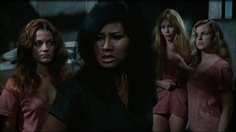 Though nowhere near Jack Hill's films in terms of technical proficiency, Women in Cages has a trashy allure that's kept it widely available on video since the '80s. Even if the film were terrible (which it isn't), the novelty of Grier as an evil warden with a full-on torture chamber would be enough to enshrine this one permanently in the drive-in hall of fame; on top of that you get pages of memorably bitter dialogue, plentiful voyeuristic nudity, and a reasonably satisfying finale for our major characters. The Shout Factory reissue also uses this film's title as its main banner, which should give an indication of how it still sums up the entire philosophy of this subgenre in three little words