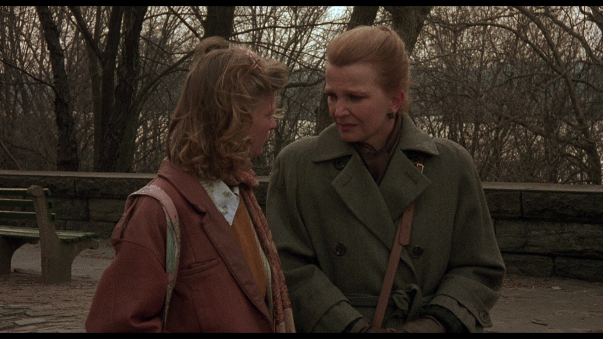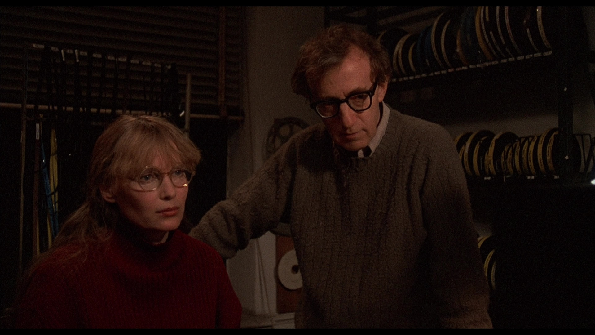 Featuring one of Allen's strongest ensembles, this film justifiably ranks in the top tier of his films (not to mention quite a feat considering it was made just after the classic The Purple Rose of Cairo) with a skillful juggling of multiple storylines that converge quite satisfyingly in the closing moments. In her fifth Allen film, Farrow is mostly relegated to a secondary character here despite the title; instead the juiciest moments go to Wiest and Caine, both of whom waltzed home with Oscars for their work. The film has been steadily available on home video in many incarnations over the years from Orion and MGM VHS editions to an MGM DVD both as a standalone and part of a big Allen boxed set in 2001. The subsequent MGM Blu-ray features only a trailer as an extra (par for the course for Allen, who refuses to allow substantial bonus features on his titles), and it's a pleasing presentation that actually looks stronger than the Orion prints did back in the day. It really offers a fine showcase for the cinematography by Carlo Di Palma, here in his inaugural Allen film (after a couple of Michelangelo Antonioni titles) and something of a visual lucky charm for the filmmaker well into the 1990s. The Arrow release is taken from the same source but looks subtly improved here thanks to a more generous and careful compression job; compare this frame grab from the MGM Blu-ray with the one on the left, and you can see how both textures