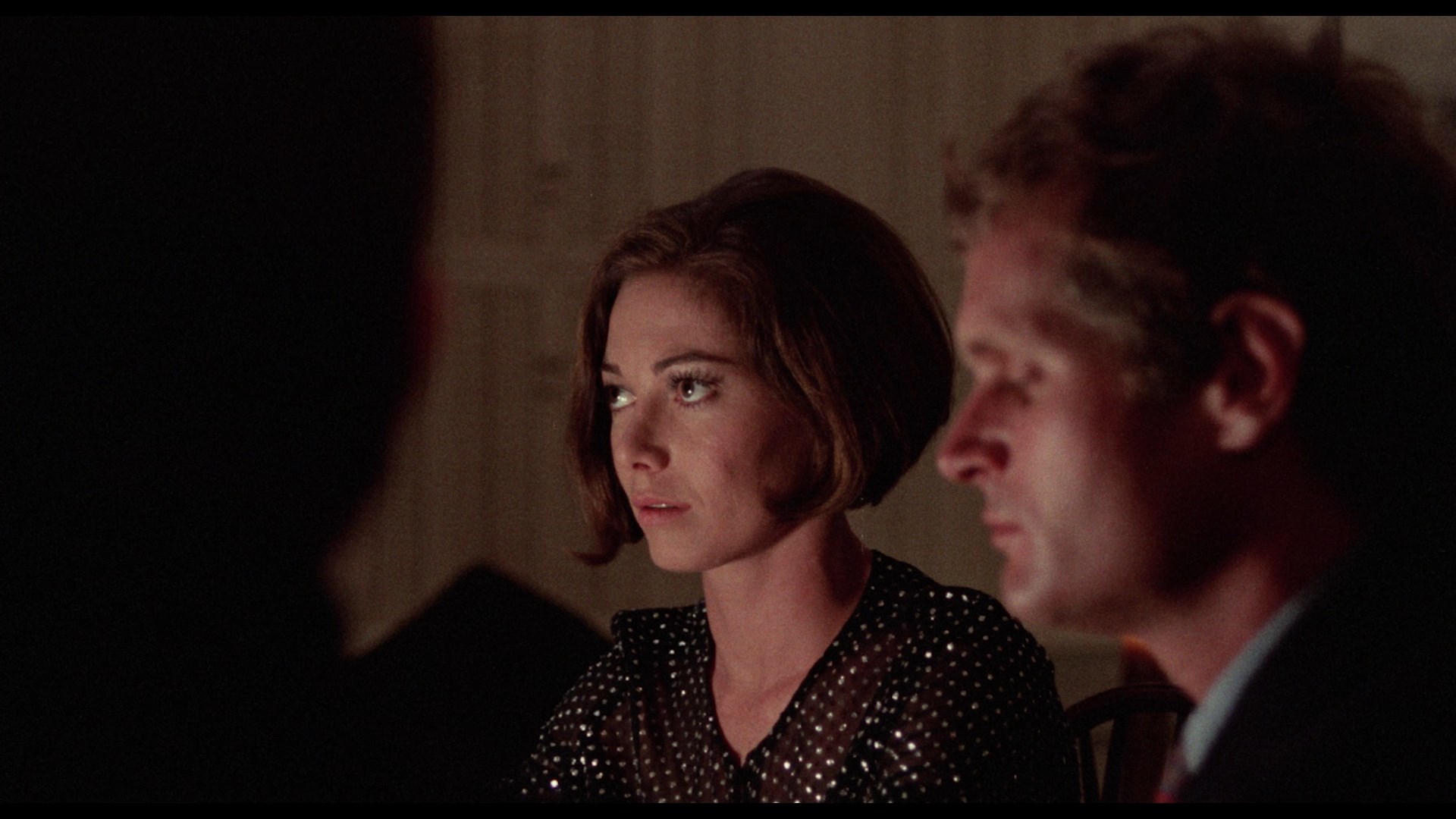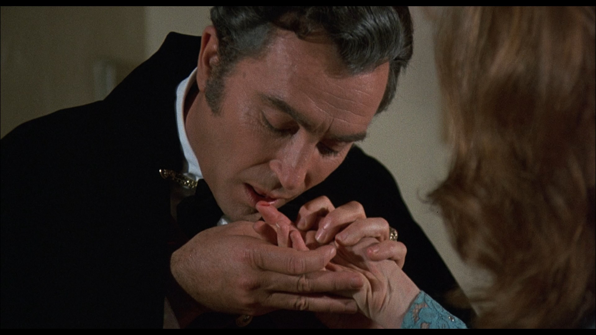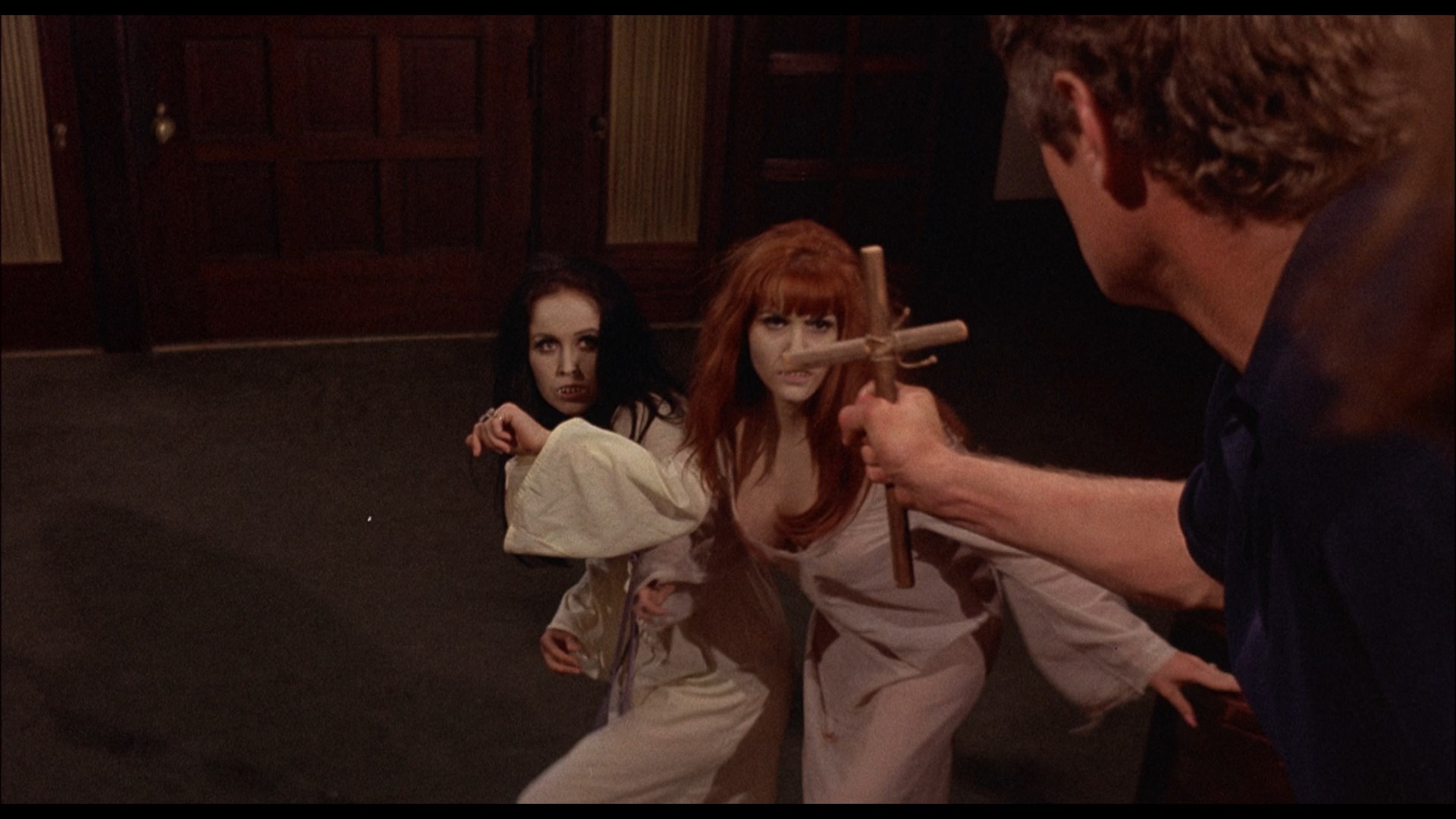 At a costume party on the premises, Yorga strikes up a rapport to Cynthia and irritates her fiance, David (Perry in an entirely different role), but that's just a prelude for a savage attack that night by Yorga's vampire brides. The next morning Cynthia has no conscious recollection of the assault, but in Yorga's clutches she has sudden nightmarish flashes and tries to piece together everything that really happened as the vampire turns out to be completely smitten and hellbent on making her his next bride.