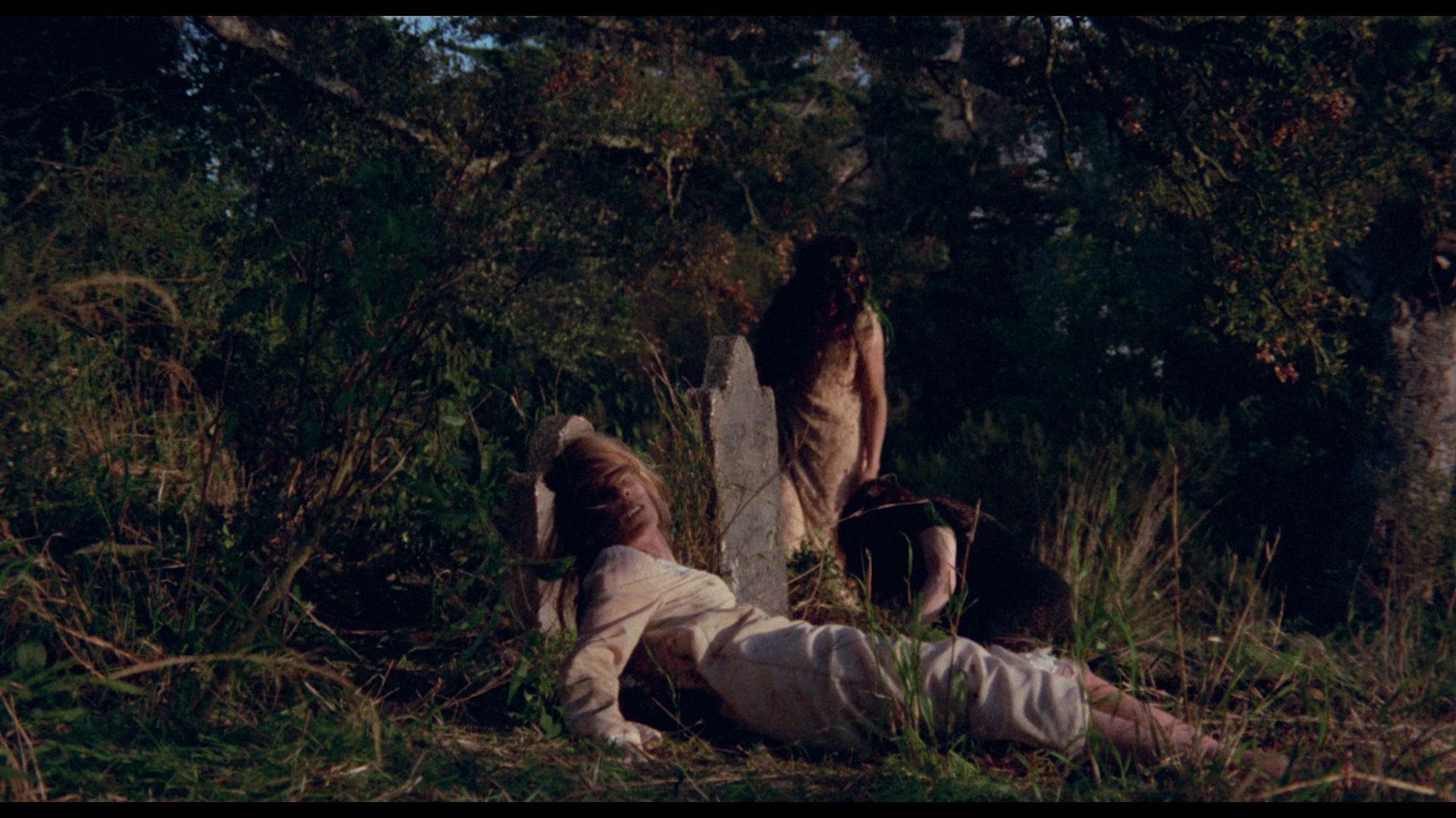 from Twilight Time turned out to look excellent as well. The technical deficiencies baked into the feature itself (some wonky framing, insufficient light in a few night shots, etc.) are always going to be there, but for what it is, the MGM HD transfer looks great. Extras on the Twilight Time disc include an audio commentary by David Del Valle and Tim Sullivan (which covers their rapport with Quarry over the years before his death, the actor's days at AIP, and some not entirely persuasive speculation about how his sexuality may have informed his performance), a reading by both of the commentators of a Rue Morgue interview with Quarry (13 mins.), a "Fangirl Radio Tribute to Robert Quarry with Tim Sullivan" (45m55s) featuring Jessica Dwyer, the theatrical trailer, and a pair of still galleries, one from the MGM archives (including a glimpse at some of the discarded sex scenes complete with an unexpected shot of a bare-assed Murphy) and another from Sullivan's collection showcasing his time with Quarry near the end of the actor's life and his participation in a Yorga double feature tribute in L.A. Also noteworthy is an isolated score track featuring the eerie score of Bill Marx, which has never been released in any other format.