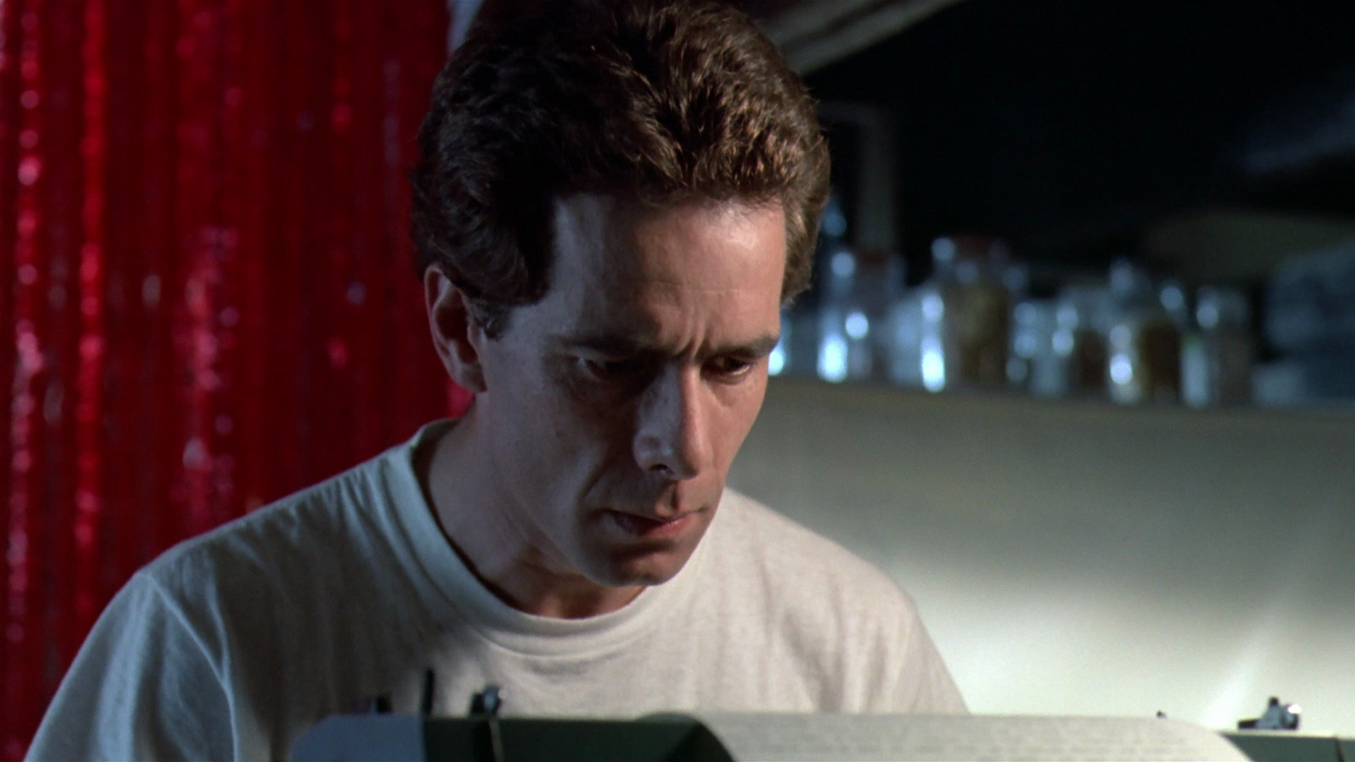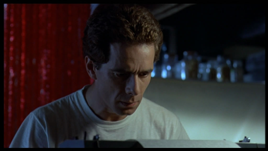 with textures in dirt, skin pores, and hair registering much more strongly, which comes in especially handy during the final act where every bit of background detail helps. The framing has been shifted a bit to 1.78:1 versus the Italian DVD's 1.85:1, with an identical amount of vertical information but a bit less on the right side. Audio can be played in DTS-HD MA English or Italian mono with optional English subtitles pulled from the English dub track. However, these are really only recommended for the hearing impaired as they're yellow SDH subtitles (so you get added designations for music, sound effects, etc.) with black bars behind them for some reason, which hopefully won't be an ongoing practice. A new interview with Avati (watchable either with burned-in English subtitles or ridiculous English overdubbing) is quite fascinating as it covers the true story behind the typewriter (seen in the film) that inspired the story courtesy of composer Amadeo Tomassi, the influence of Gothic literature, the low budget, its stylistic kinship with Laughing Windows, and the film's coincidental but extremely strong similarities to Stephen King's Pet Sematary, especially the last few minutes. In the 6-minute "Voices of Darkness," Lavia covers the internal tensions on the production, his background in theater that led to his casting in this role, and the personal upheaval in his life at the time that he ended up channeling into his performance.