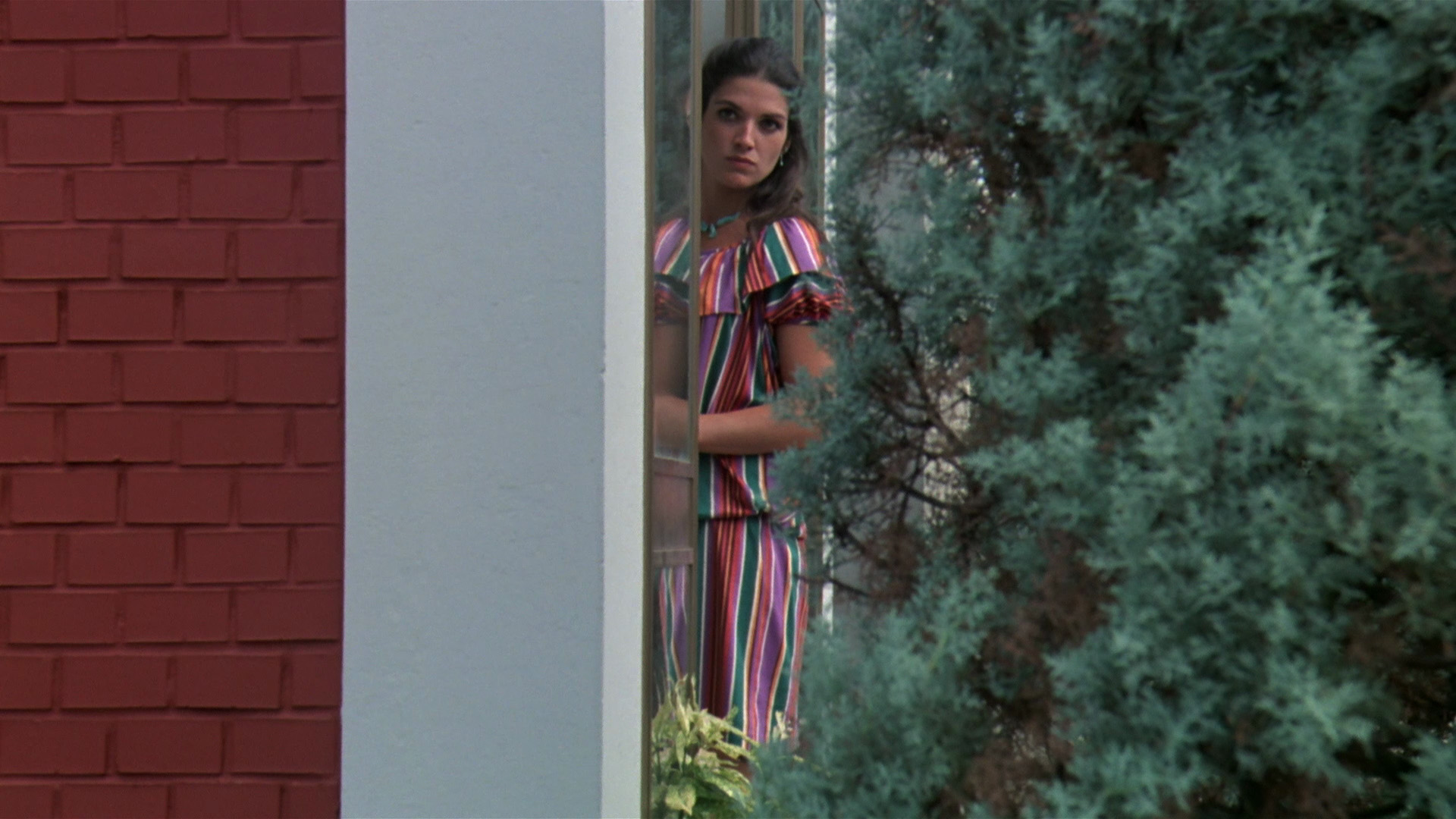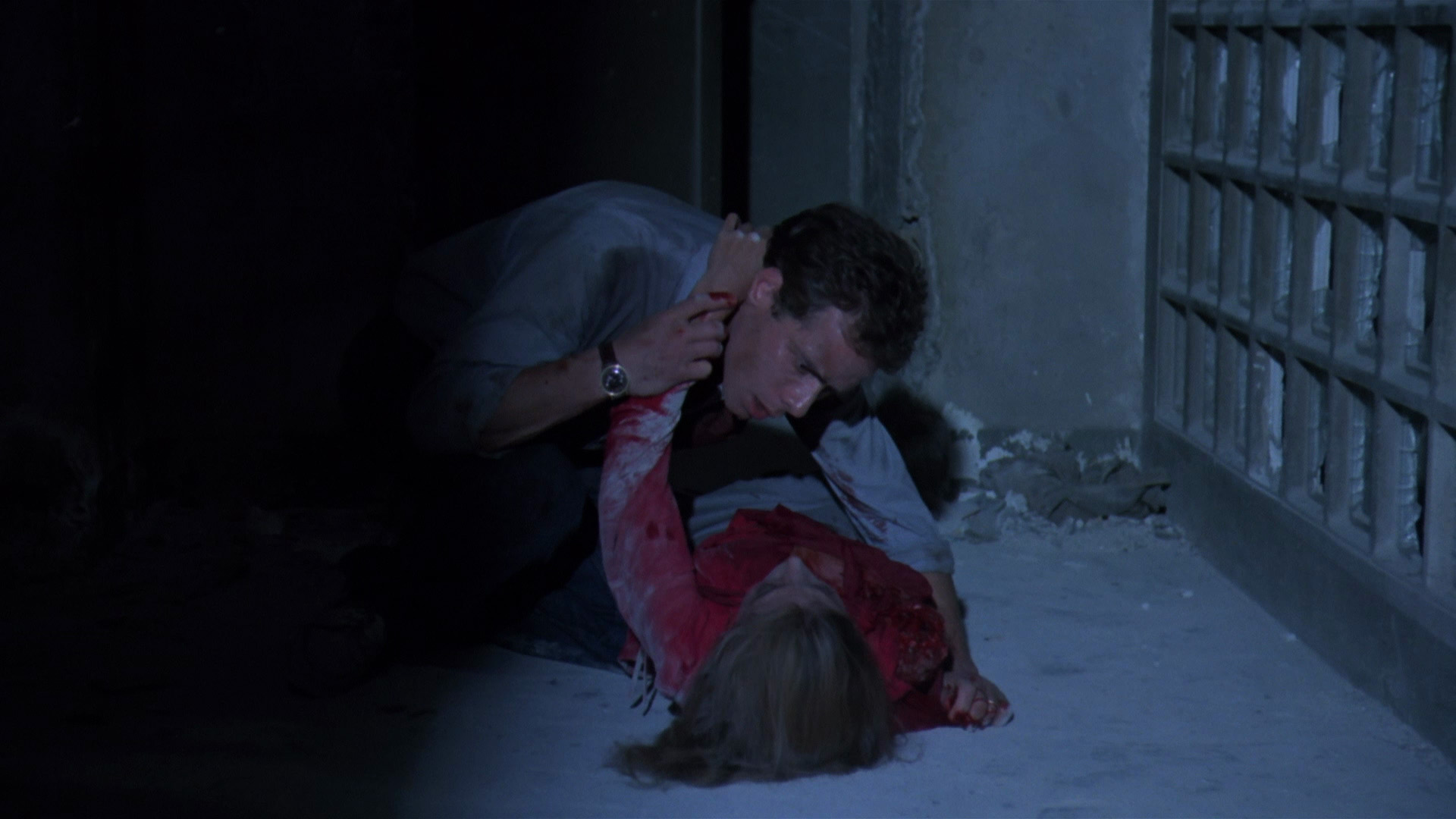 pretty drab, but at least it was watchable and easier to sit through than the tape. Significantly better was the 2002 Italian DVD from 20th Century Fox, which featured the Italian theatrical trailers for this and Laughing Windows, plus an "I pericorsi della paura" featurette (14 mins.) with Avati, Lavia, Ortolani, and producer-screenwriter Antonio Avati chatting in Italian (no subs) about making the film. The film can be played with Italian 5.1 or 2.0 options or English 1.0, with optional Italian or English subtitles. Note that the English subs are dubtitles and not translated from the Italian track, which has off screen dialogue placed very differently and appears at completely different times in some scenes. The film was clearly shot with most (but not all) of the actors speaking English, albeit with what were likely very heavy accents based on some rudimentary lip reading, so the dubbed English track fits the lip movements far more closely than the Italian version. The slightly windowboxed 1.78:1 transfer marked a big step up, restoring the film's widescreen framing and featuring better detail, albeit with a significant heavy teal tint that wiped out any true whites in the film and tamped down considerably on warmer hues like red. (Here's a sample frame grab for comparison.)
